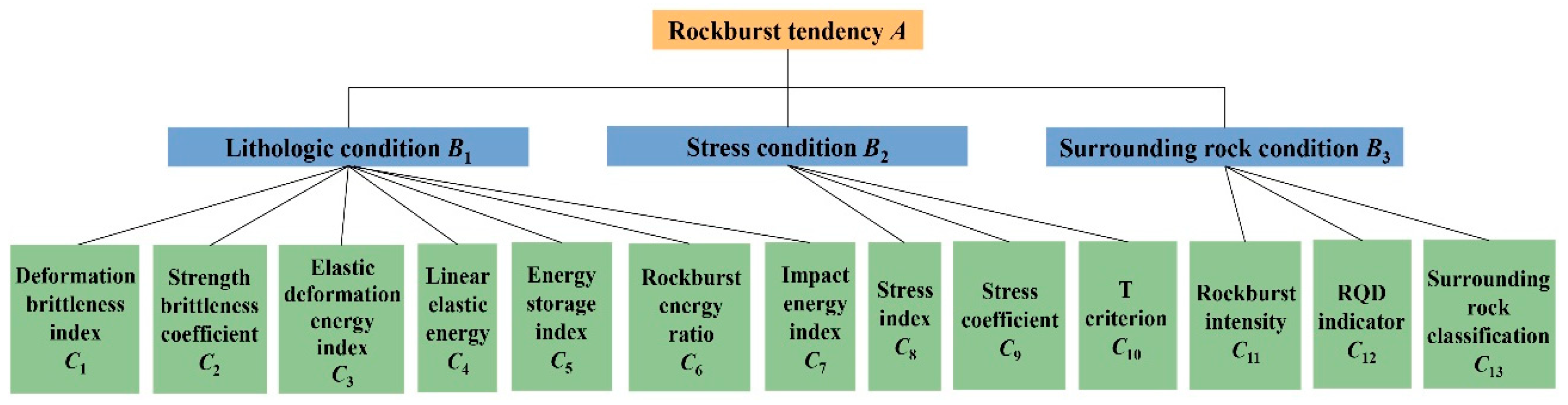 57]. Using matter–element theory and correlation functions, Xiong introduced a matter–element model for predicting rockbursts [