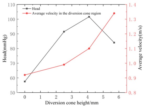 3.1.4. Influence of the Diversion Cone Height on Centrifugal Blood Pump Performance