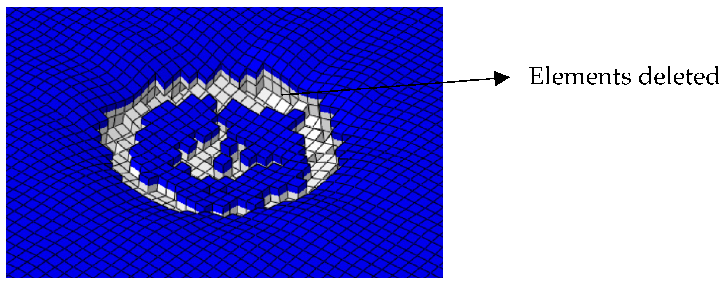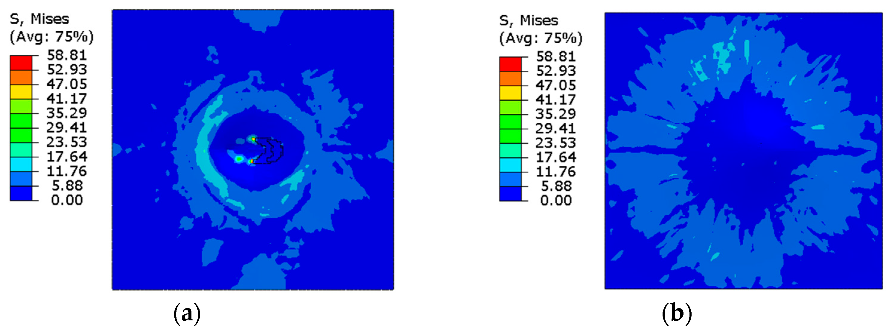 - Johnson, G.R.; Cook, W.H. Fracture Characteristics of Three Metals Subjected to Various Strains, Strain Rates, Temperatures and Pressures. Eng. Fract. Mech. 1985, 21, 31–48. [Google Scholar] [CrossRef]