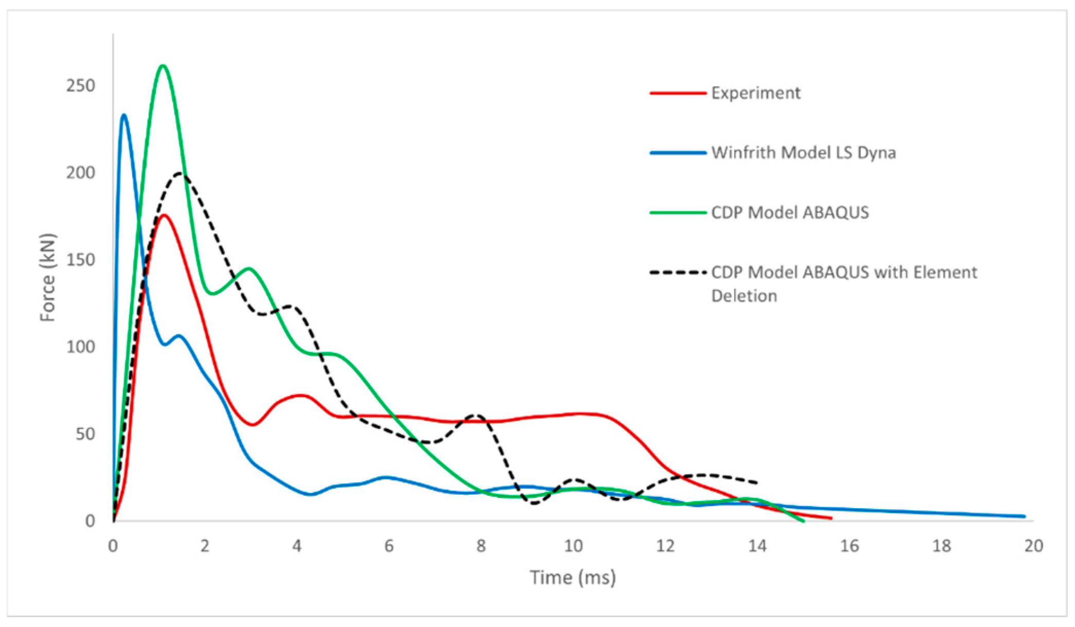 13] are in good agreement, and therefore, this modeling qualification justifies the accuracy of the CDP model in ABAQUS/CAE 2020 when applied to impact simulations.