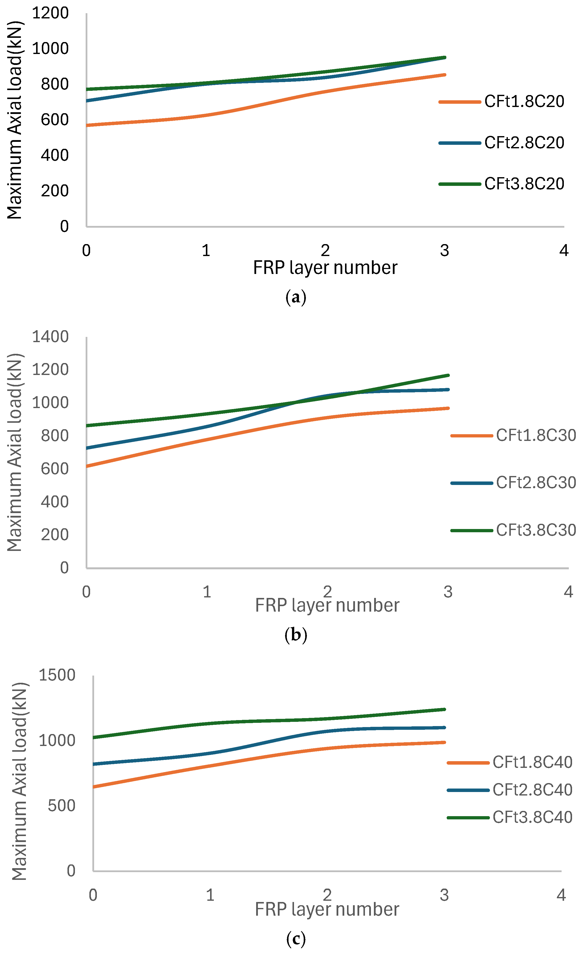 3.2.1. Effect of Fiber-Reinforced Polymer (FRP) Confinement
