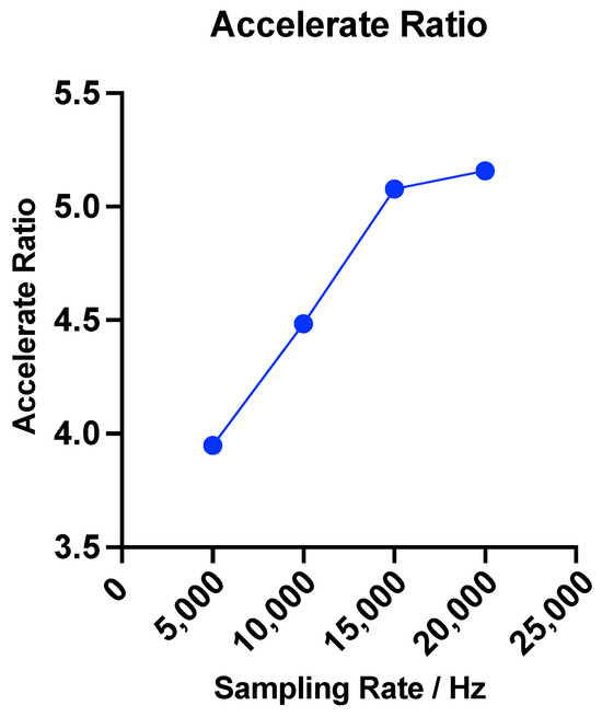 To further observe the impact of data scale on performance, we use the acceleration ratio to measure the performance improvement of the cloud–edge–end architecture compared to the traditional cloud-end architecture. The calculation formula for the acceleration ratio is as follows: