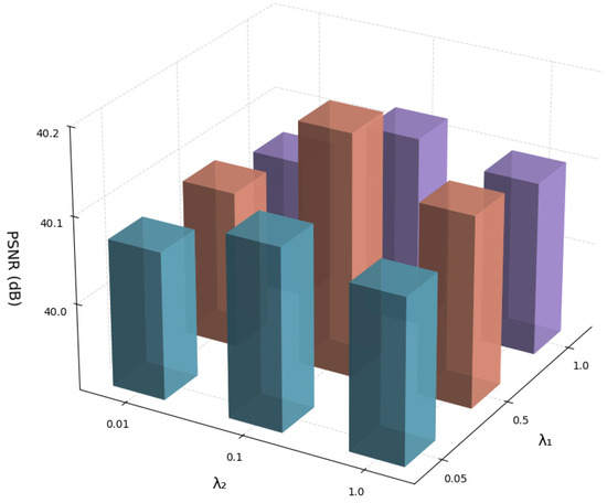 . To confirm these hyperparameters for our task, we compared the PSNR values of different weight combinations on the Chikusei dataset. As shown in