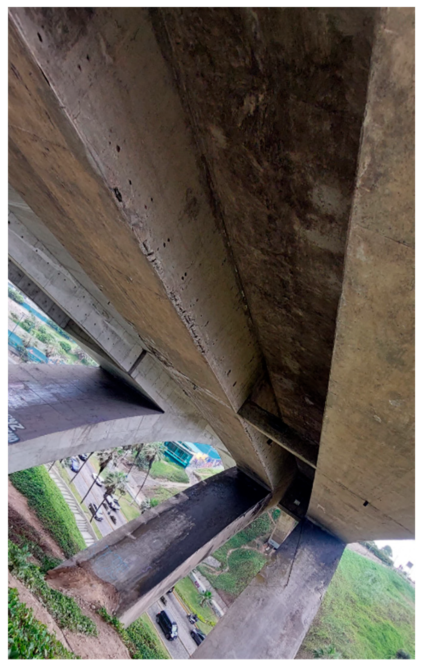 The Villena Rey Bridge, located in Miraflores, Lima, plays a fundamental role in urban mobility. However, its infrastructure has experienced progressive deterioration due to exposure to environmental factors, increased vehicular traffic, certain deficiencies in its original design, and insufficient maintenance management. Constant humidity, air salinity, and pollution have contributed to the degradation of its materials, while the rise in traffic flow has imposed greater structural demands, accelerating its deterioration.