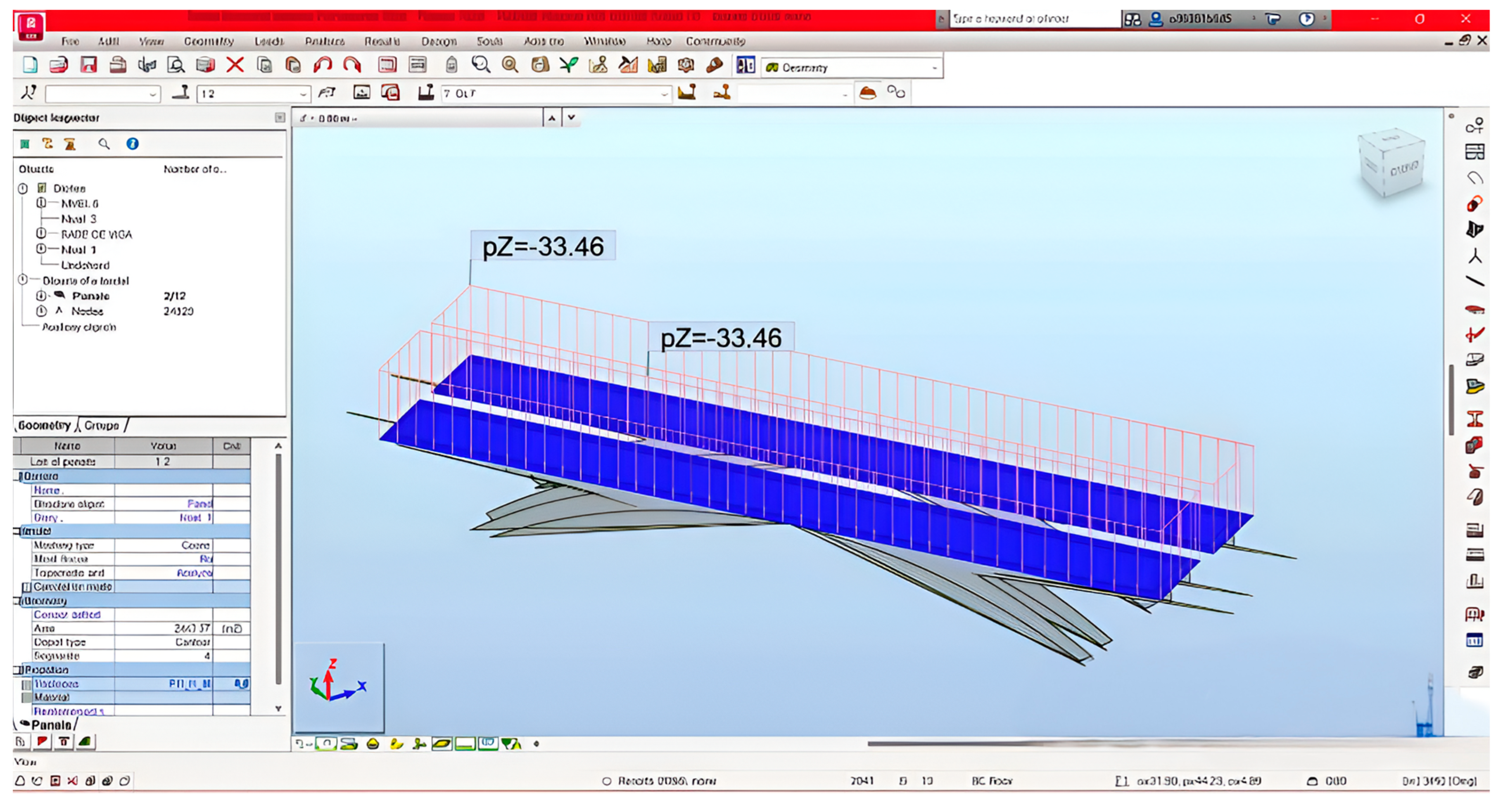 4.1. Geometric Modeling and Material Definition for the Villena Rey Bridge