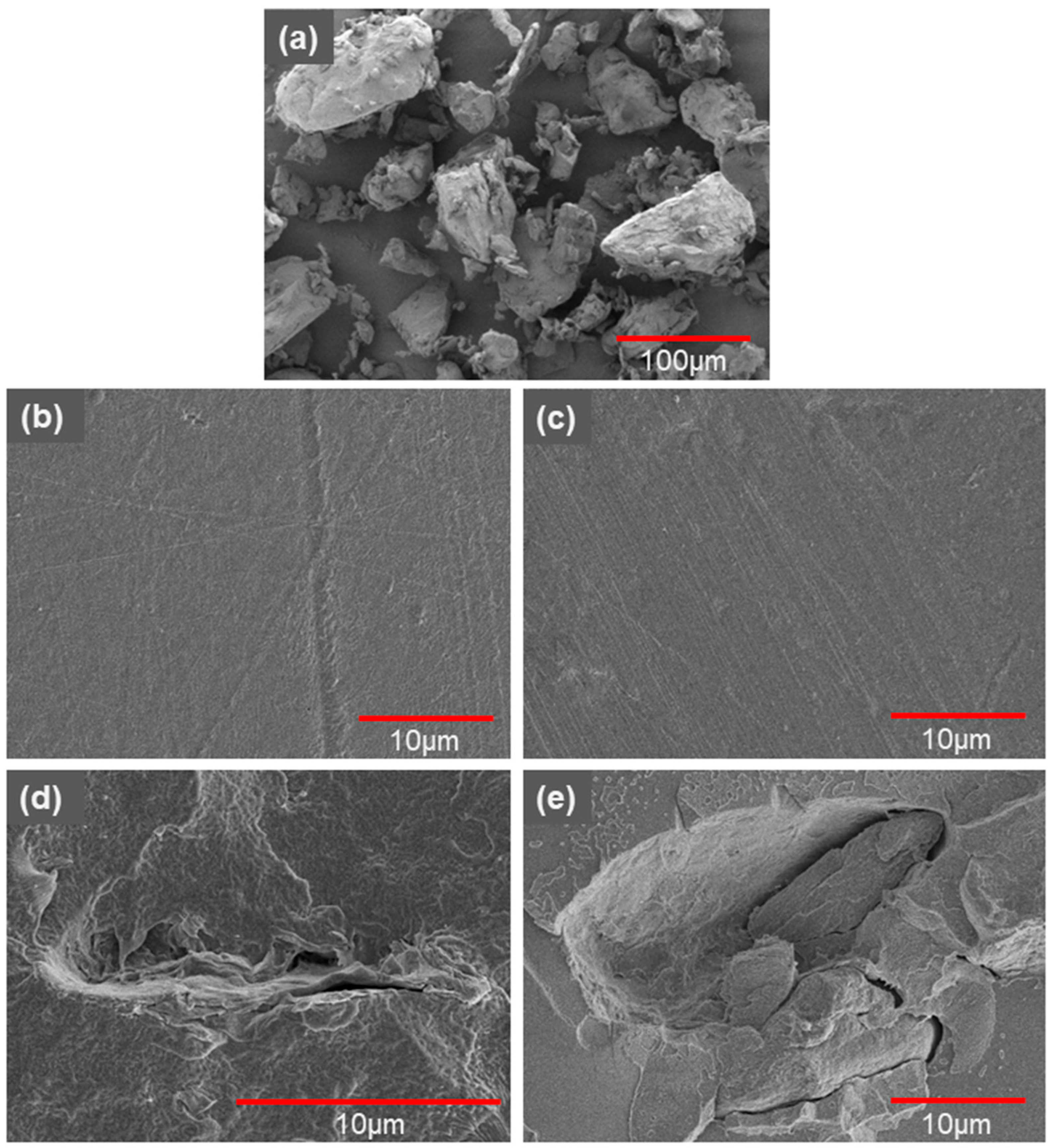 - Solomon, S.; Hall, R.; He, J.; John, V.; Pesika, N. Enhancing the Tribological Properties of Low-Density Polyethylene Using Hard Carbon Microfillers. Materials 2024, 17, 1536. [Google Scholar] [CrossRef]