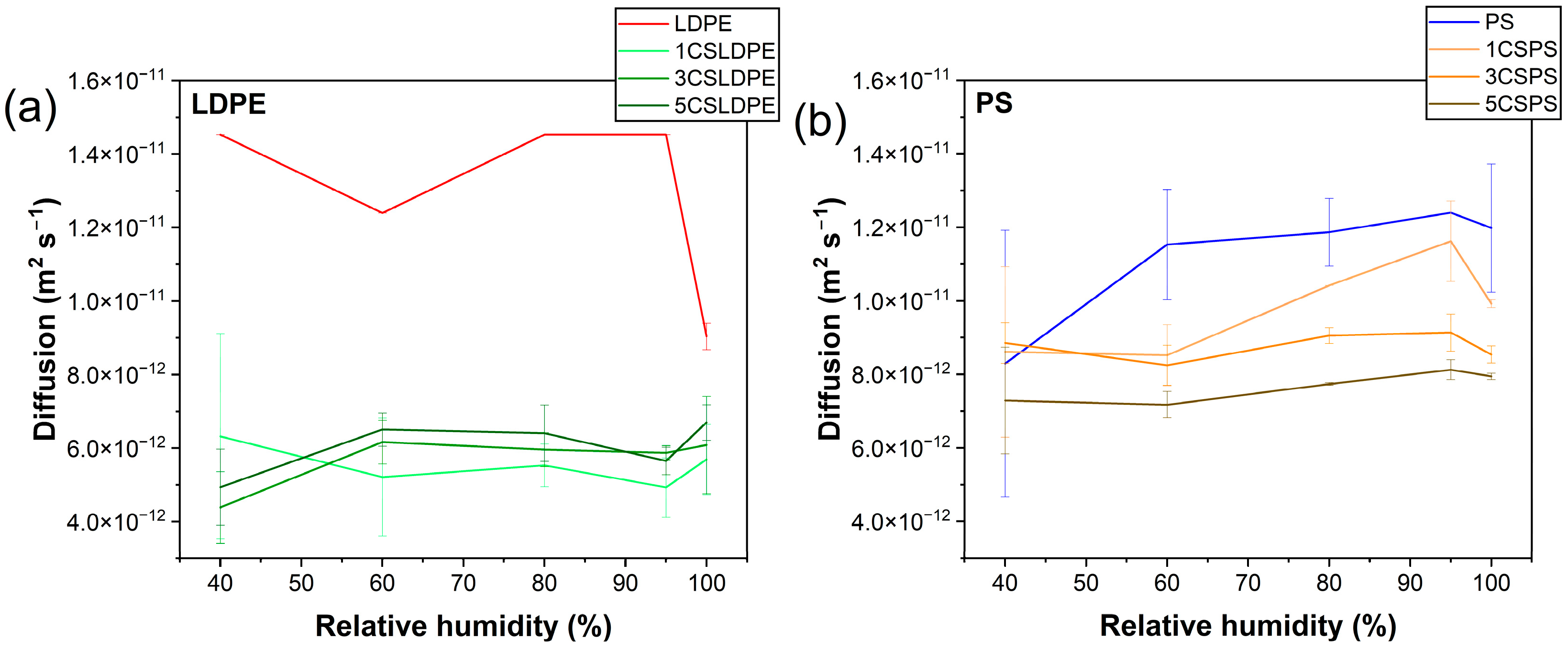 - Despond, S.; Espuche, E.; Domard, A. Water sorption and permeation in chitosan films: Relation between gas permeability and relative humidity. J. Polym. Sci. B Polym. Phys. 2001, 39, 3114–3127. [Google Scholar] [CrossRef]