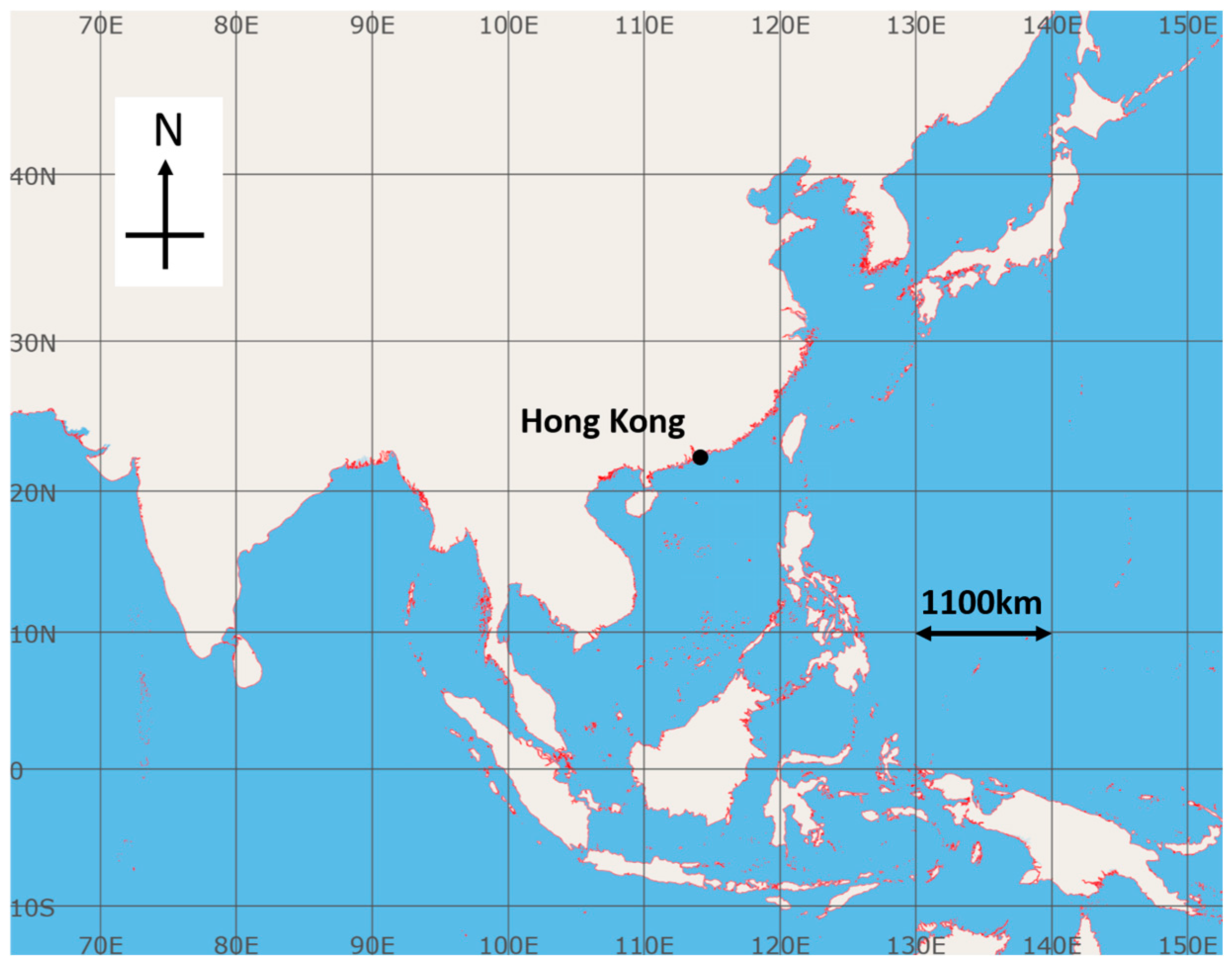 Location of Hong Kong at the black dot.
