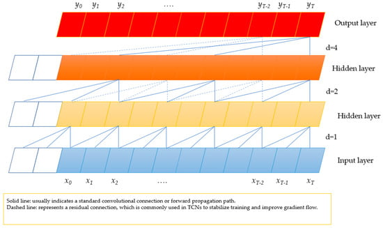 A TCN captures long-term dependencies through dilated causal convolution, and its output relies only on current and historical inputs to avoid future information leakage.