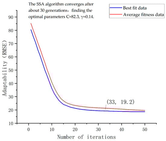 The process of optimizing the SVR parameters using Bayesian optimization is as follows: with the goal of minimizing the fitness function (i.e., the root mean square error of SVR on the validation set), the parameter search range is set to C ∈ [0.1, 100], γ ∈ [0.001, 10]. The Bayesian optimization uses a Gaussian process as the surrogate model and expected improvement (EI) as the acquisition function, with the number of initial points set to 10 and the number of iterations set to 50. As shown in Figure 9, the algorithm converges to the global optimal solution after about 30 iterations, and finally obtains the optimal parameter combination C = 85.7 and γ = 0.12. The parameters in this group significantly improve the ability of SVR to capture the nonlinear relationship in the landslide displacement sequence, and the RMSE of the validation set decreases by about 28.3% compared with the default parameters.