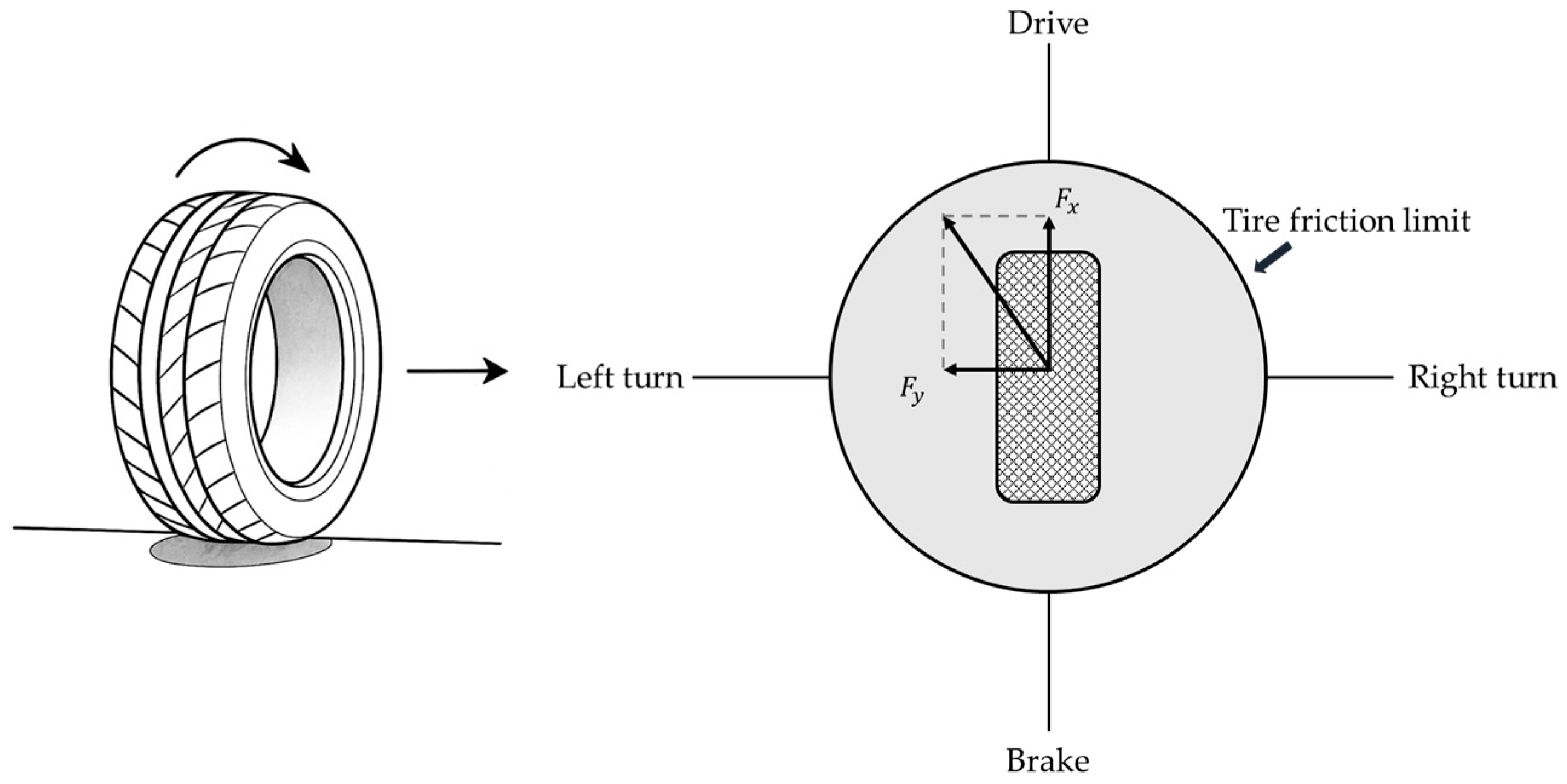 The combined longitudinal and lateral tire forces must satisfy the friction constraint to ensure that the tire operates within its physical limits (as shown in