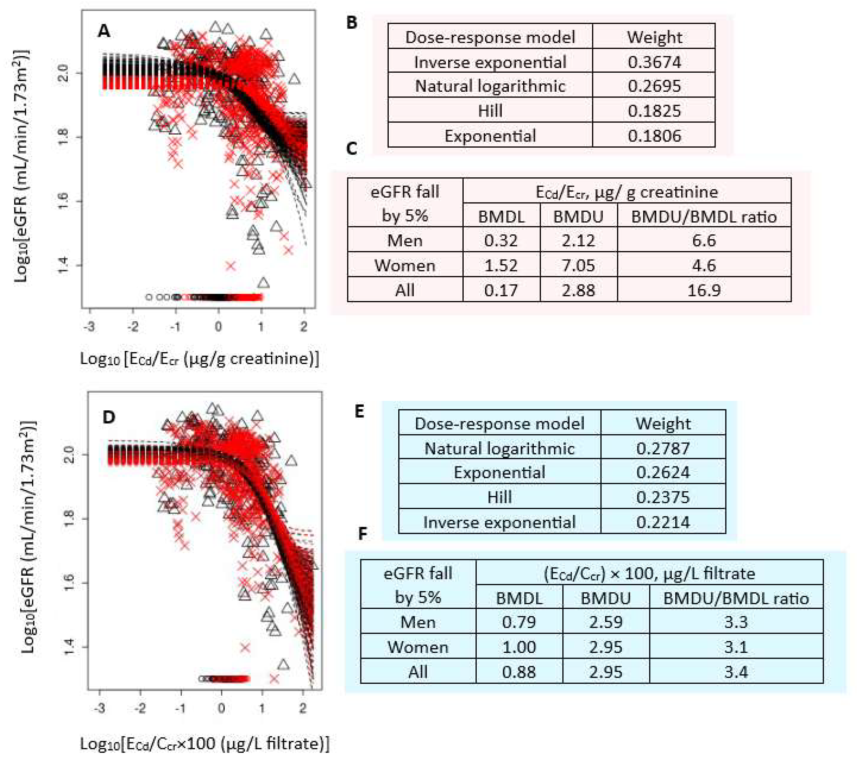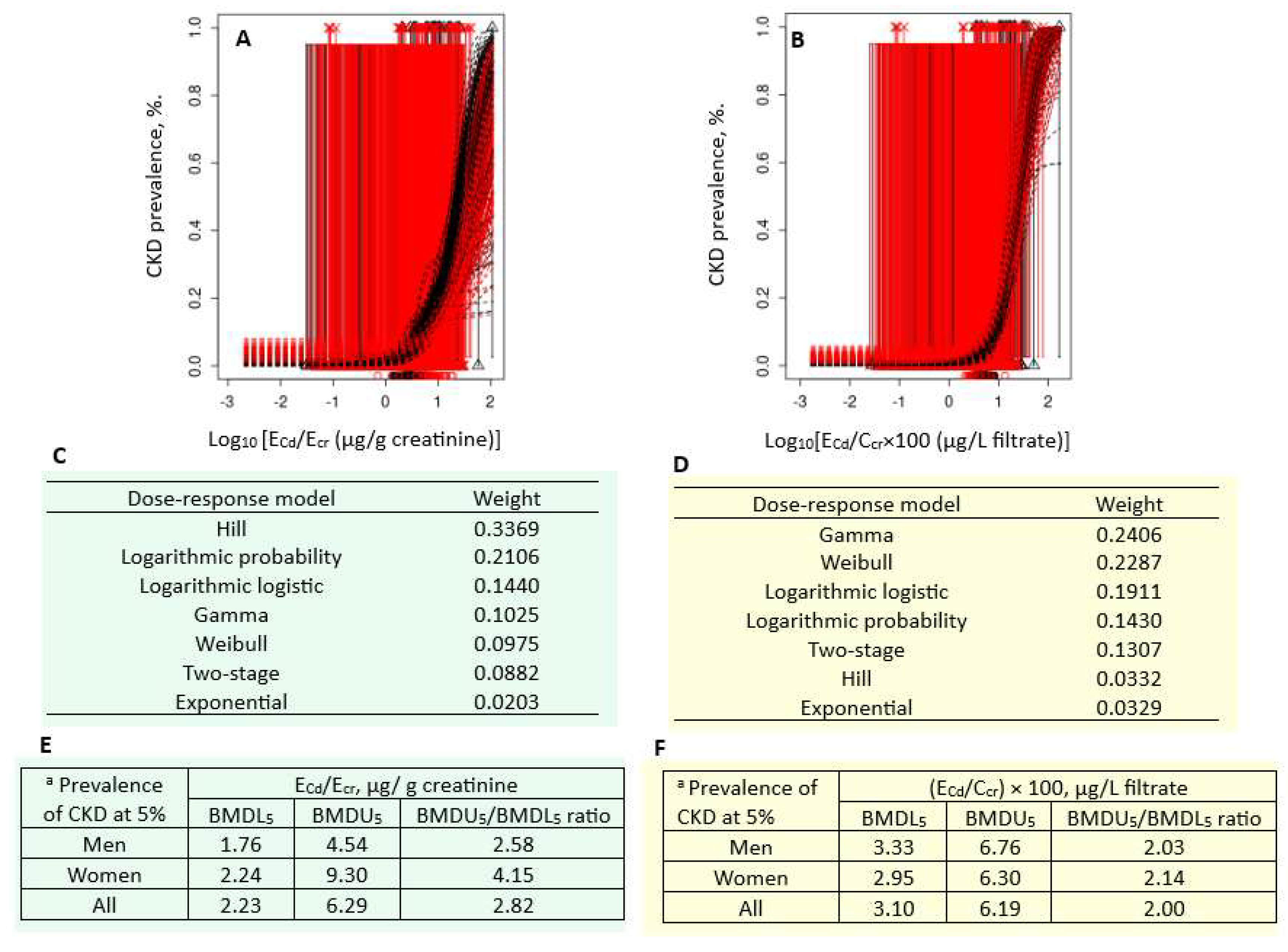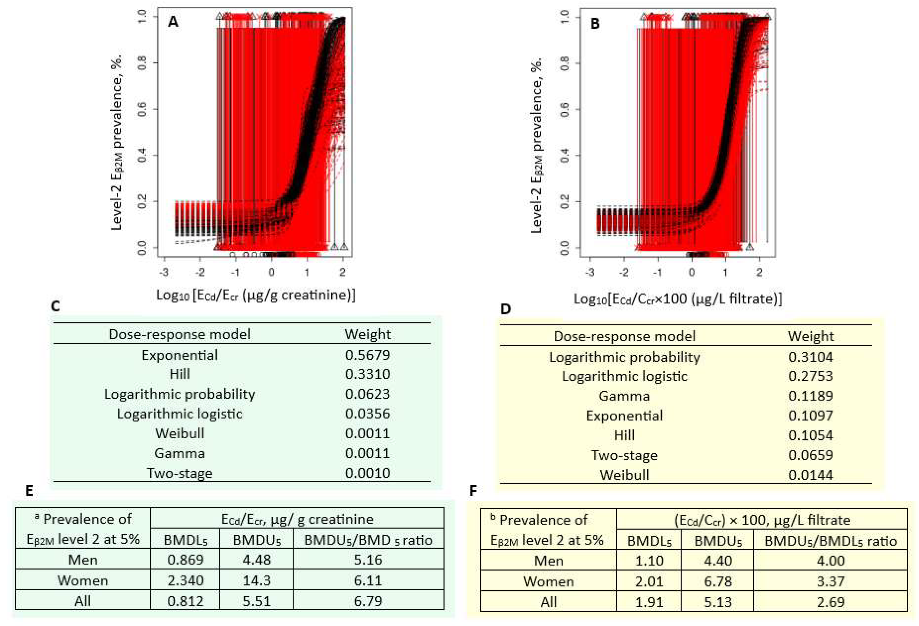 3.5. Cd Excretion Benchmarks Derived from CKD and Abnormal β2M Excretion Prevalences