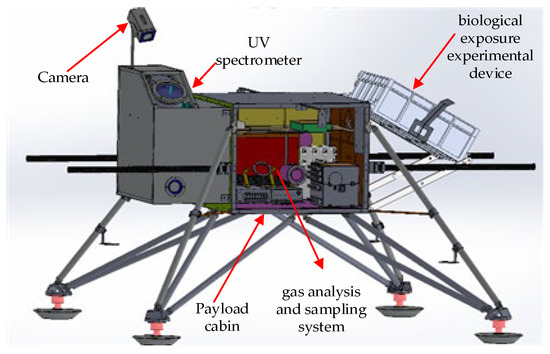 The HH-19-9 mission conducted biological exposure experiments and acquired near-space ultraviolet (UV) radiation data, investigating the effects of near-space exposure on biological samples and its correlation with the measured UV radiation environment [15,16]. HH-19-9 utilized a high-altitude balloon to transport a gas analysis and sampling system, a biological exposure experimental device, and a UV spectrometer into near space, focusing on atmospheric environment characterization, UV radiation measurement, and its impact on representative organisms. The mechanical design of the HH-19-9 payload cabin, illustrating the integrated payloads, is shown in Figure 8.