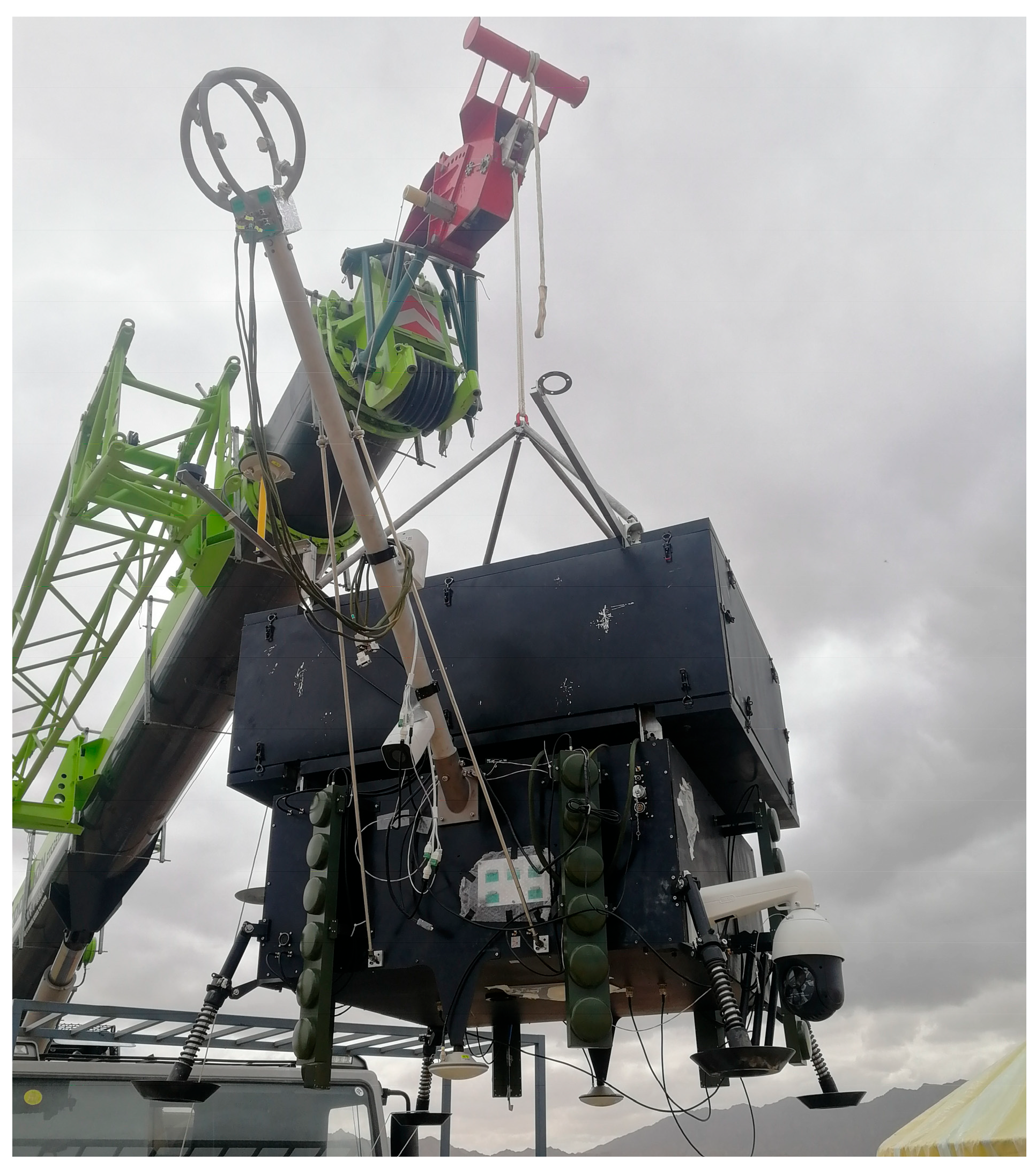 One day prior to each experiment, a small meteorological balloon was launched to profile high-altitude wind conditions. Analysis of the acquired data determined flight suitability. All equipment and tools underwent thorough inspection 24 h before the scheduled launch. Felt cloth was deployed on crane surfaces to protect the payloads during handling. Concurrently, formal applications for the requisite airspace and flight plan approval—specifying flight altitude, duration, and operational area—were submitted to the relevant air traffic control authorities.