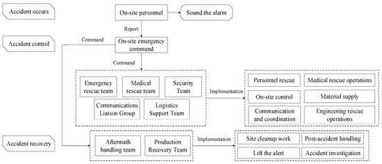 In this mode, emergency response to construction safety accidents is understood as involving “the analysis of the impact of the current scenario elements on the accident based on real-time information, and the subsequent determination of appropriate emergency response measures”. The situational information of construction safety accidents represents the real-time status of the accident, so the scenario-response emergency response can be regarded as a dynamic process. Based on the different situational factors exhibited by the accident, accident response personnel conduct response analyses under the influence of various factors and promptly implement effective response measures to mitigate the consequences of the safety accident.