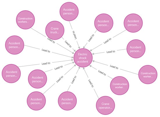 As an illustrative example, the case of “electrocution accidents caused by human factors” was retrieved using the following Cypher query: MATCH (humanFactor: human factor)-[r: cause]->(electricShock: electrocution accident) RETURN humanFactor, electricShock. The relevant nodes and relationships were directly displayed, and the query results are presented in Figure 7. By examining the human factors contributing to electric shock incidents and identifying the causes of these factors, construction practices could be standardized, and managers were enabled to detect and control unsafe behaviors that might lead to accidents. In addition, the knowledge graph was demonstrated to provide users with multi-dimensional entry points for retrieval, thereby enabling comprehensive and multi-perspective access to emergency response information. This functionality contributed to the enhancement of safety management levels.
