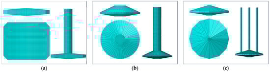 Geometrical models of the three spudcan types: (a) HY944; (b) HY941; (c) NH-4.