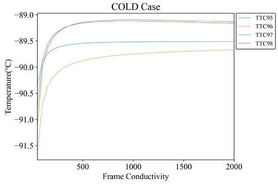 Frame conductivity–thermal coupler temperature ratio at cold case.