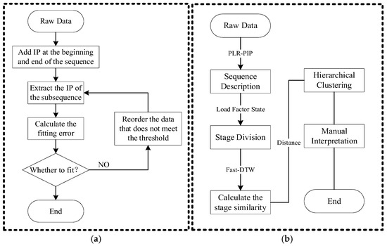 Algorithm flowchart: (a) PLR-PIP algorithm; (b) Fast-DTW algorithm.