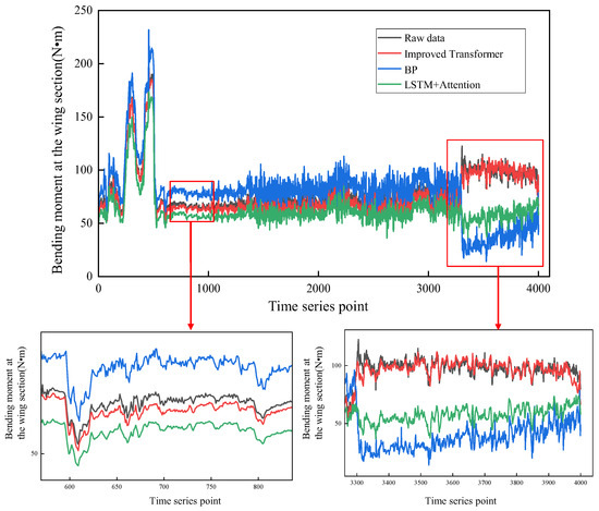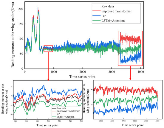 The results show that the improved Transformer model significantly improves the prediction accuracy. By introducing the convolutional self-attention mechanism, the improved model can better capture local temporal features and overcome the limitations of the original Transformer in processing temporal data. At the extreme points of load, the improved model exhibits smaller prediction errors compared with other models. Meanwhile, the model’s ability to handle long-term dependencies is also enhanced, enabling it to better adapt to the characteristics of temporal data in the aircraft load prediction task.