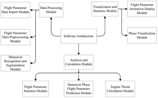 To achieve efficient processing, analysis, and visualization of flight parameters, this system adopts a modular architecture design, and the specific data flow and functional relationship between modules can be intuitively illustrated in Figure 11.