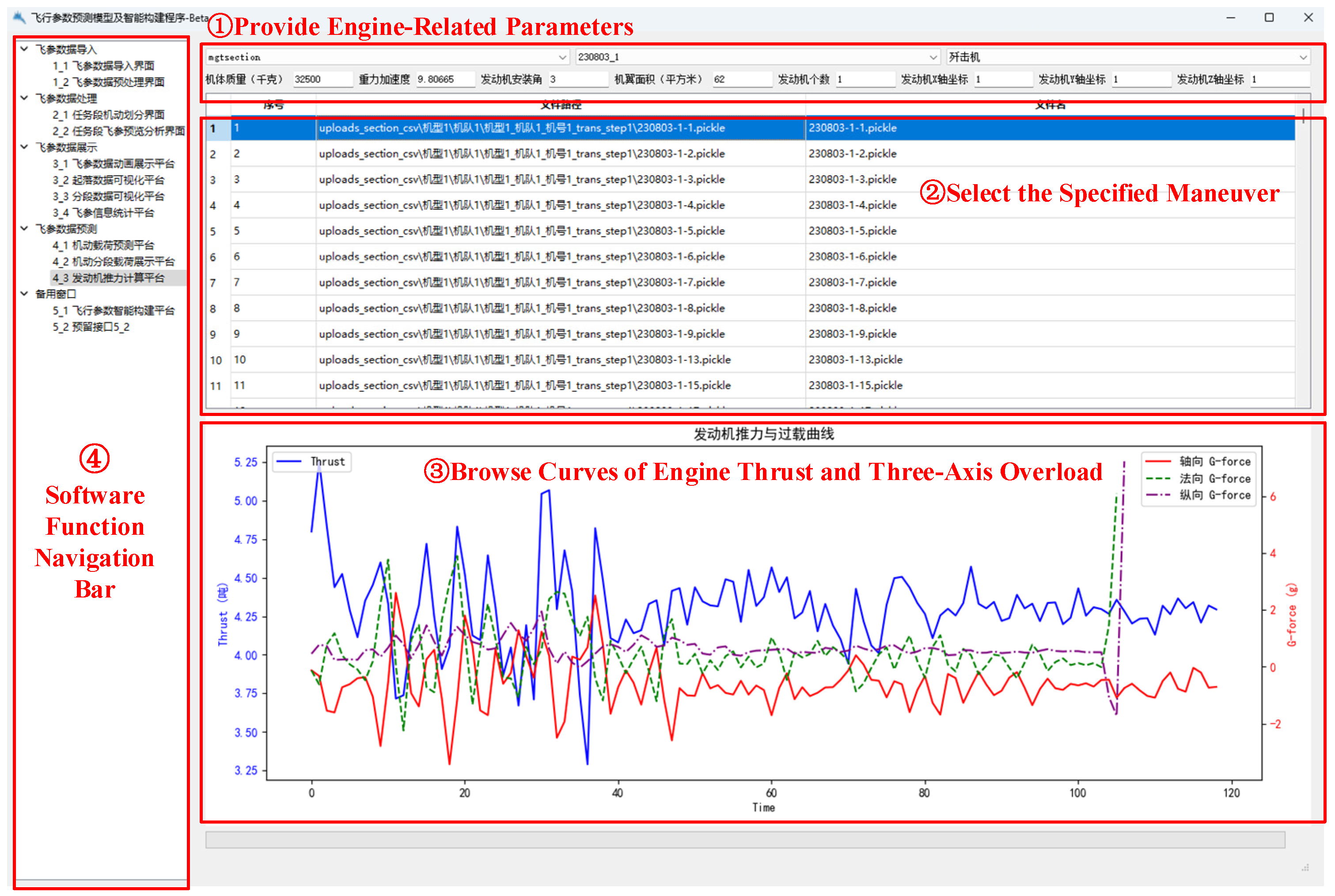 Chicago/Turabian StyleDu, Juan, Senxin Mao, Rui Wang, Yue Ma, Mengchuang Zhang, and Zhiping Yin. 2025. "Software System for Thrust Prediction and Preliminary Engineering Design of Aircraft Using Visual Recognition and Flight Parameters" Applied Sciences 15, no. 21: 11770. https://doi.org/10.3390/app152111770