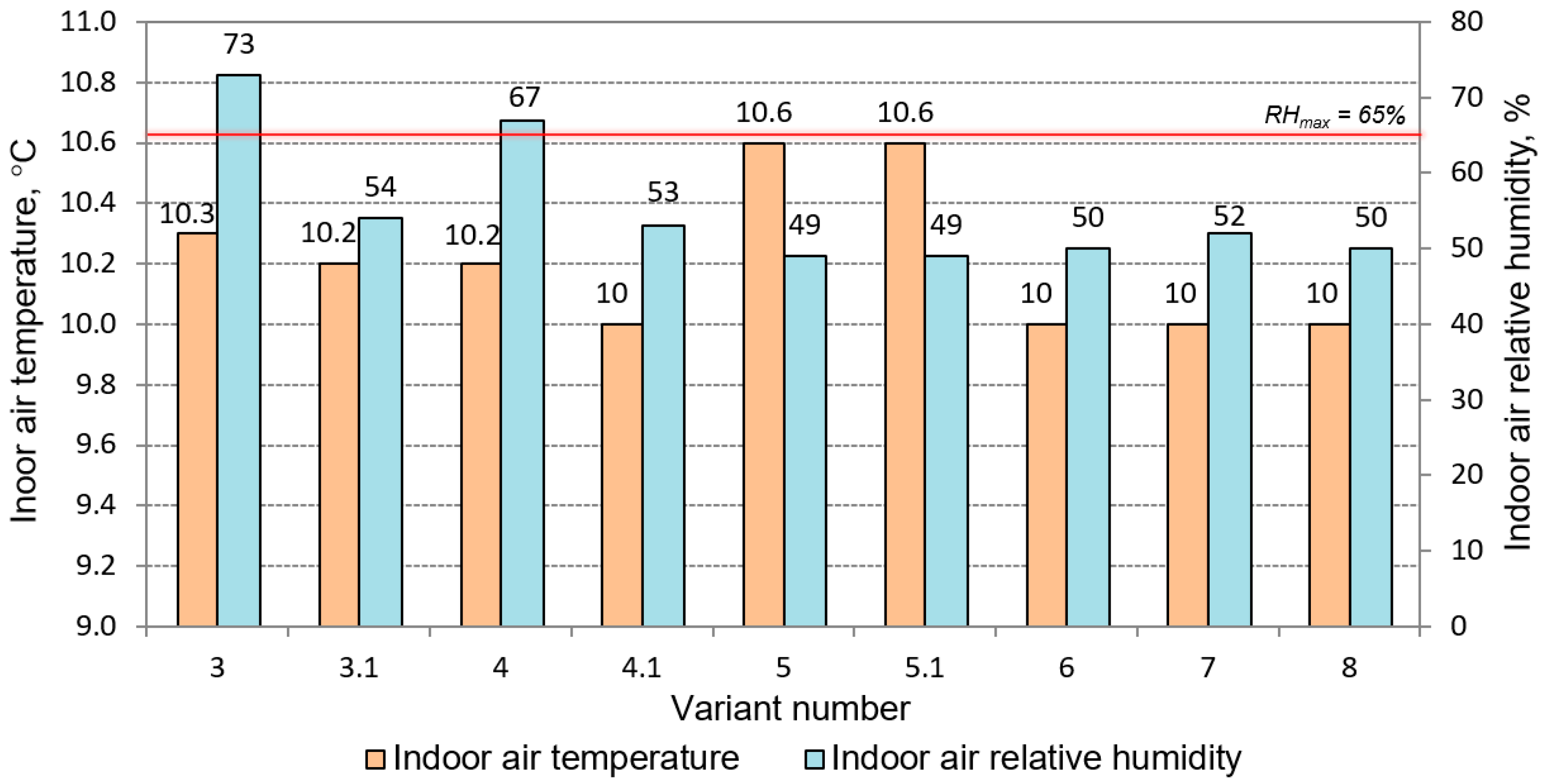 Table 4. Proportion of simulation results in compliance with the recommended indoor air parameters for calculation Variants 3–8.