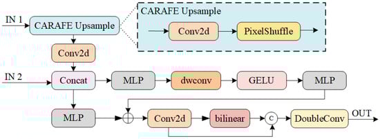 Figure 3. The structure of DualPath Decoder Block. The block utilizes CARAFE for upsampling to aggregate more contextual information, achieving feature fusion through a dual-path structure.