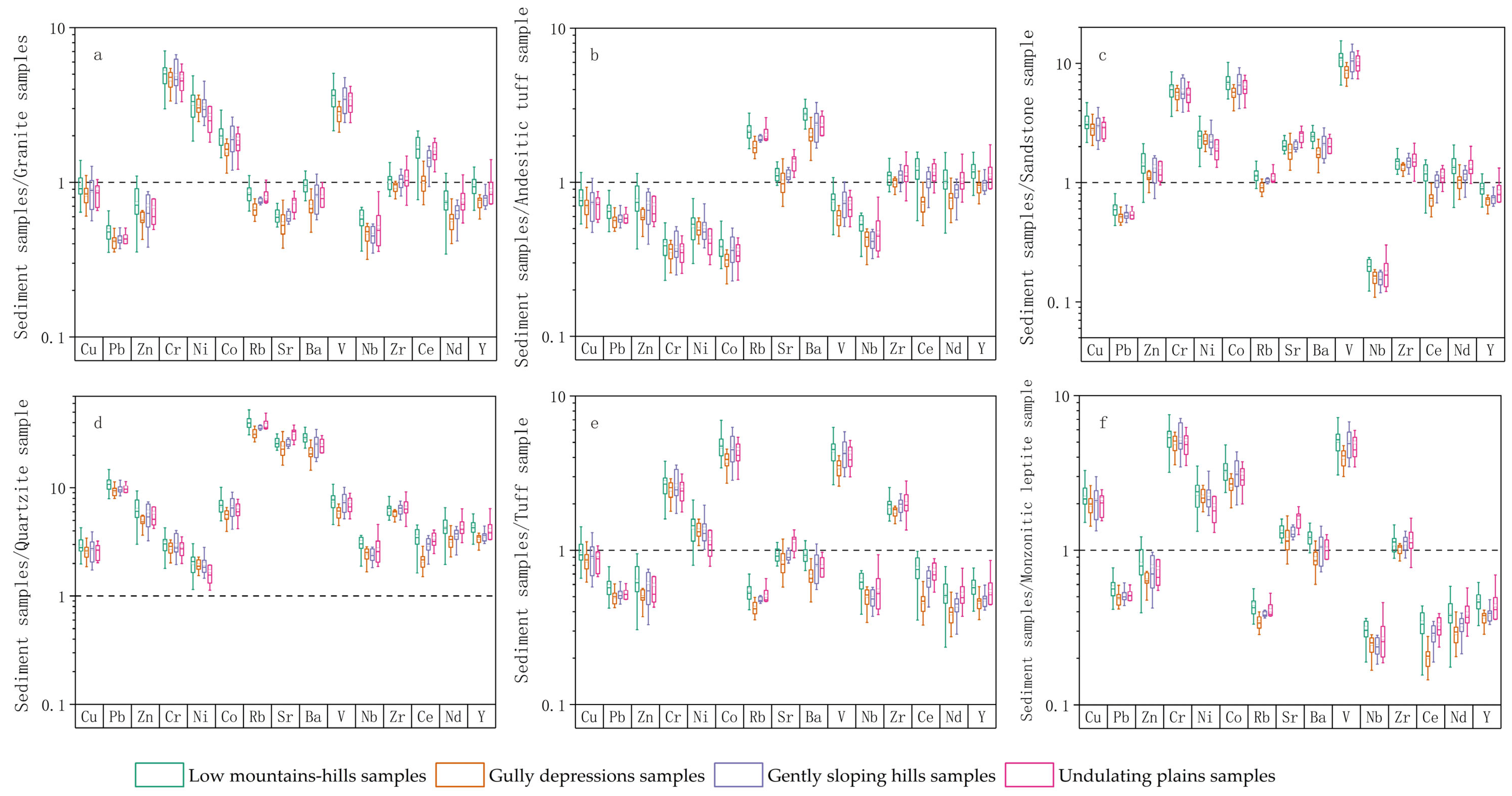 | Cu | Pb | Zn | Cr | Ni | Co | Rb | Sr | Ba | V | Nb | Zr | Ce | Nd | Y | ||