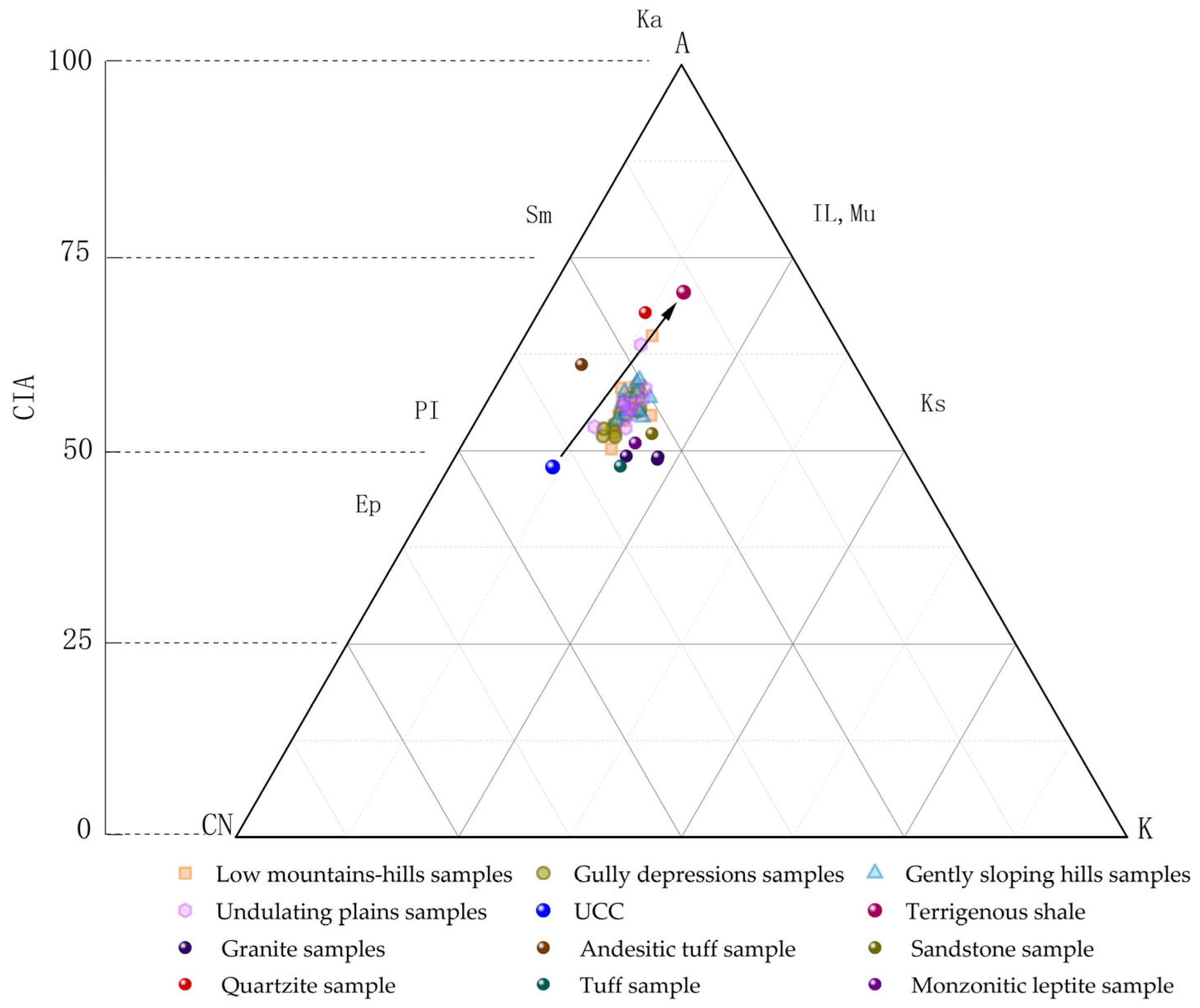 - Nesbitt, H.W.; Young, G.M. Early Proterozoic climates and plate motions inferred from major element chemistry of lutites. Nature 1982, 299, 715–717. [Google Scholar] [CrossRef]