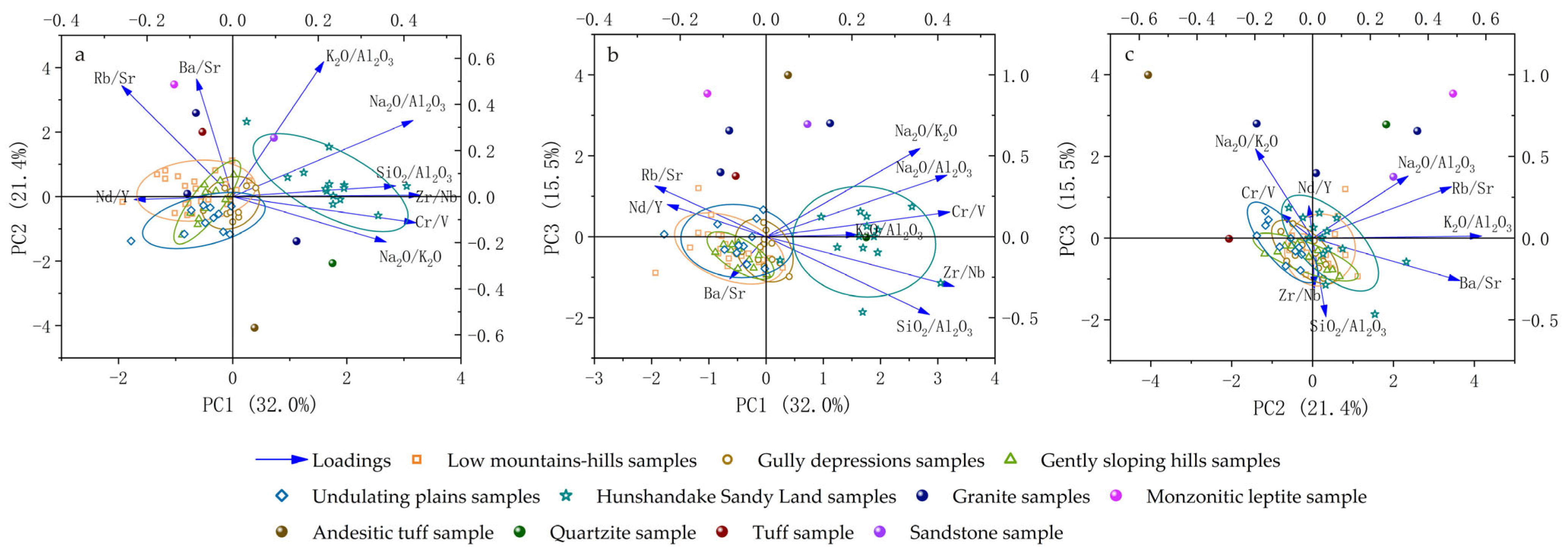 | Na2O/K2O | 0.35903 | −0.19757 | 0.54569 |