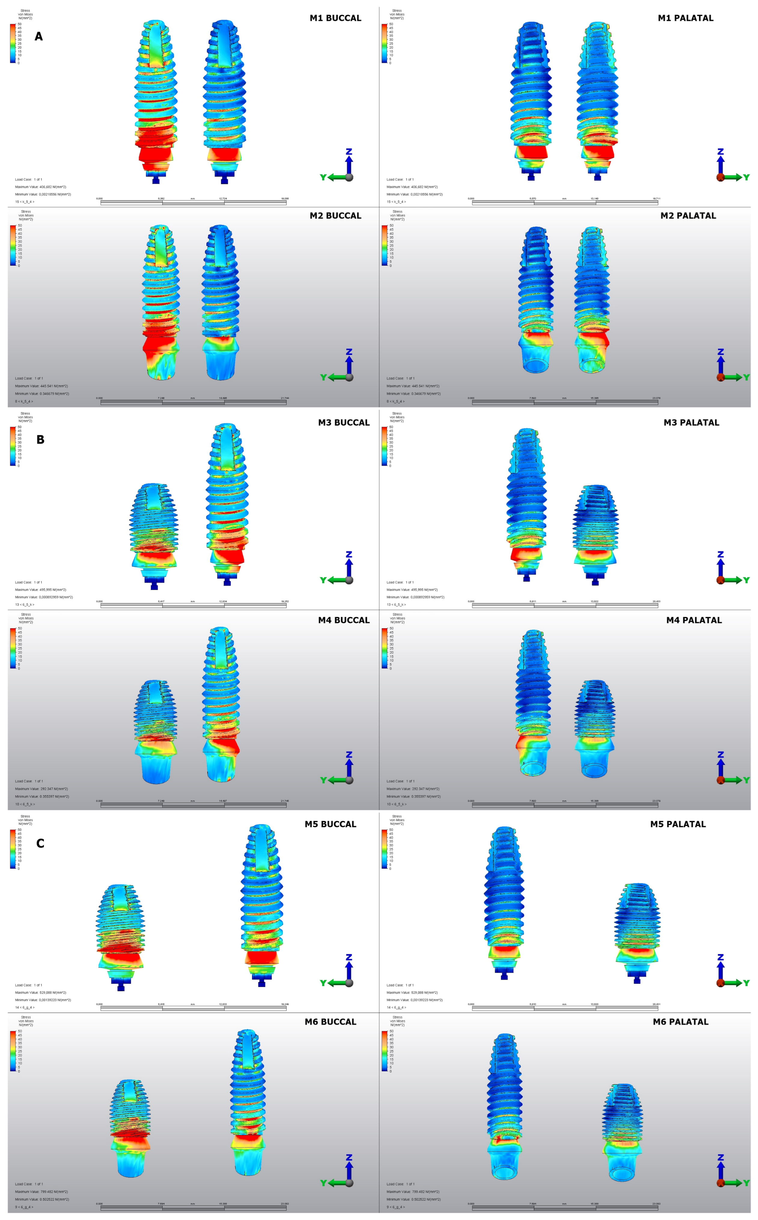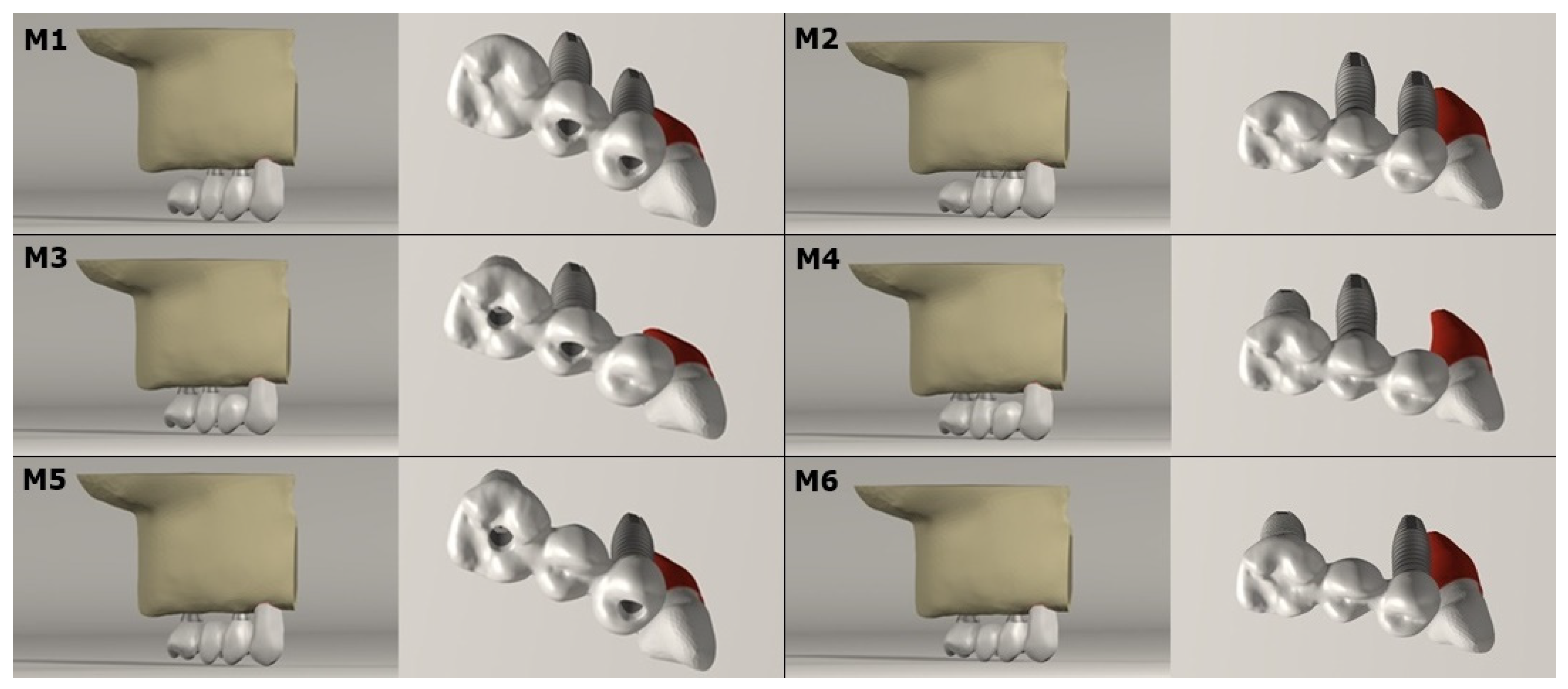 - The type of retention (screw-retained or cement-retained) would not significantly influence the biomechanical behavior of the prostheses.
