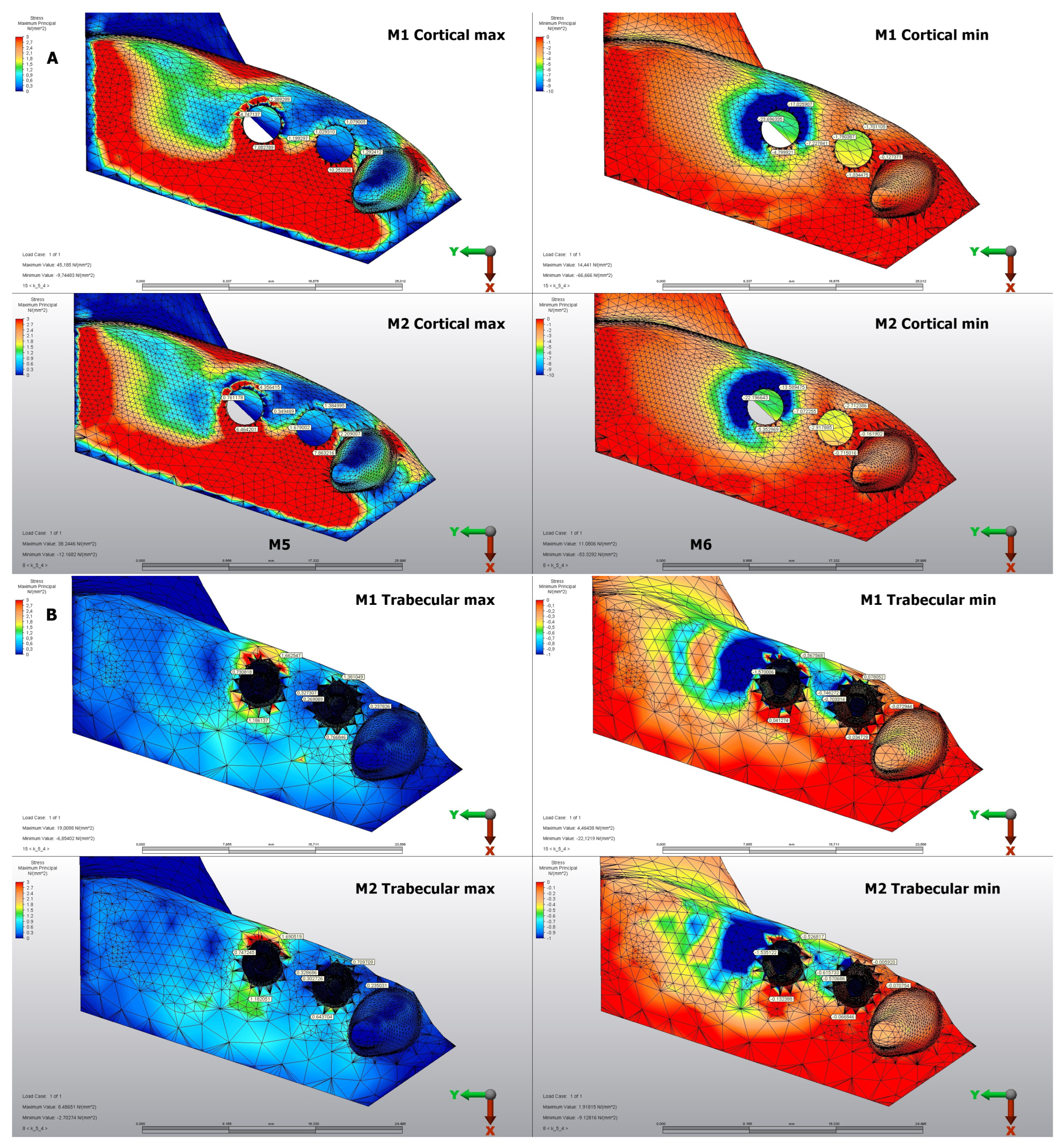 3.3. Models 5 and 6 (Conventional-1PM-1M Implants)