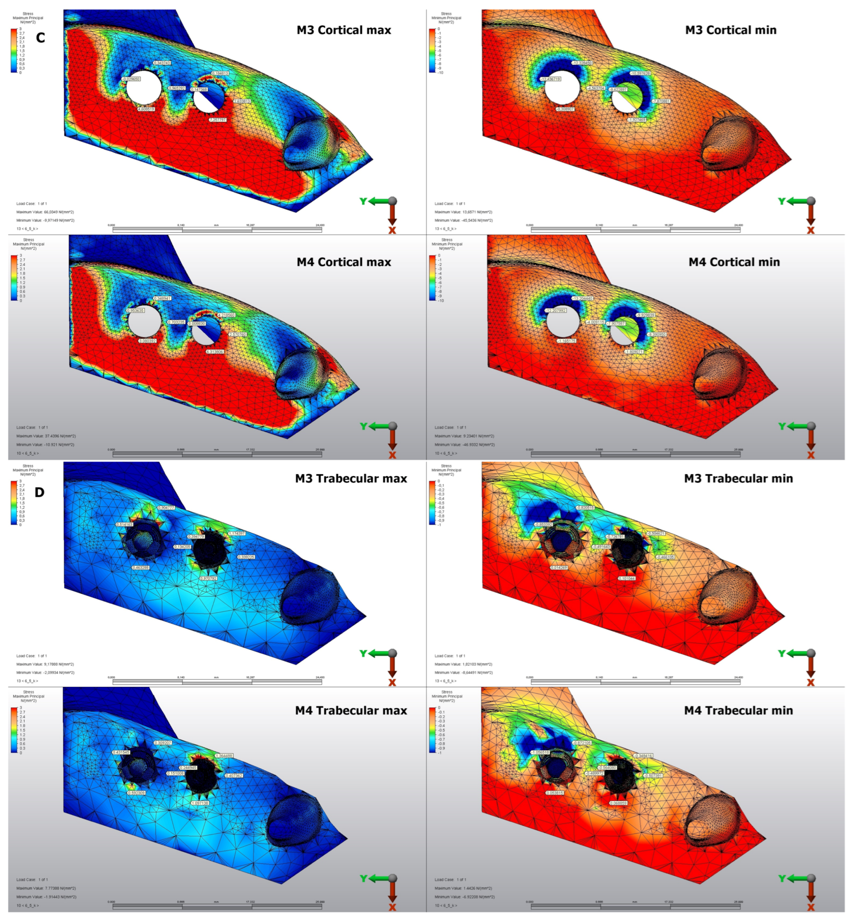 3.2. Models 3 and 4 (Mesial Cantilever-2PM-1M Implants)