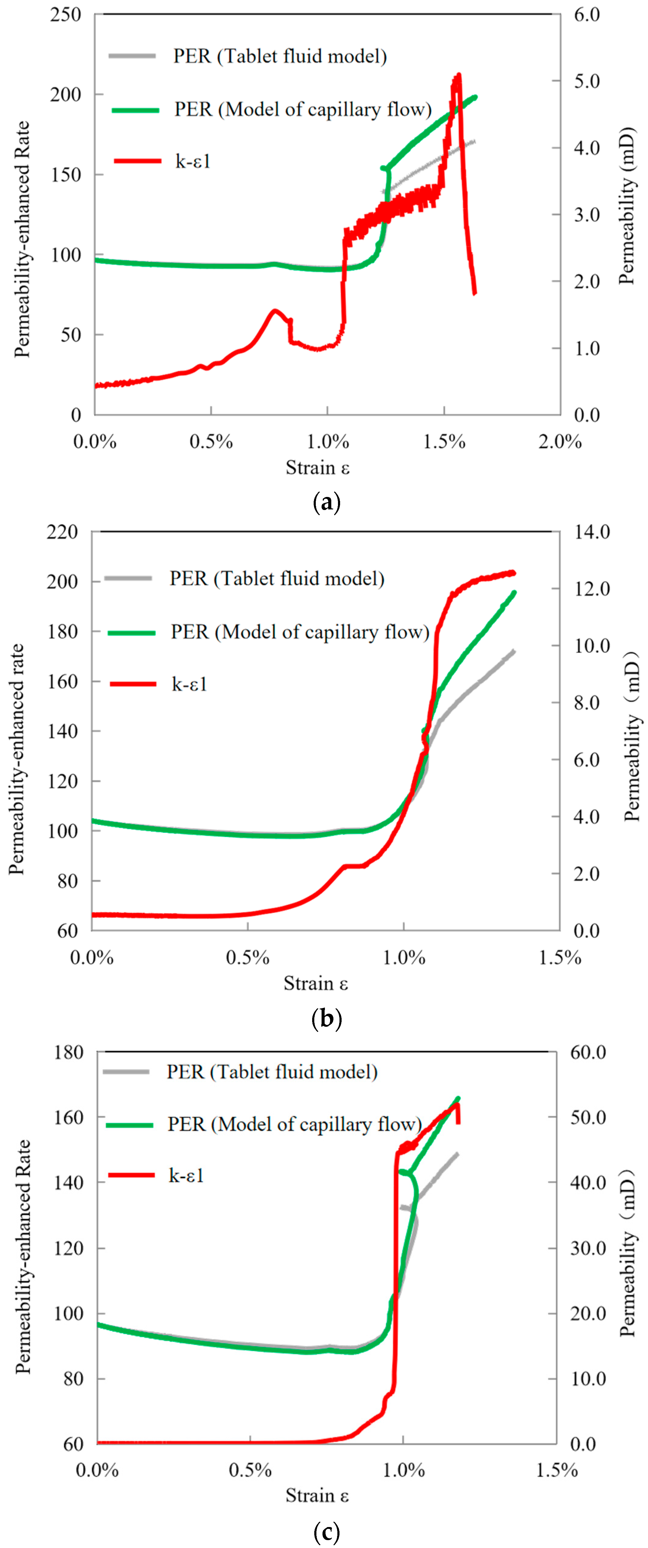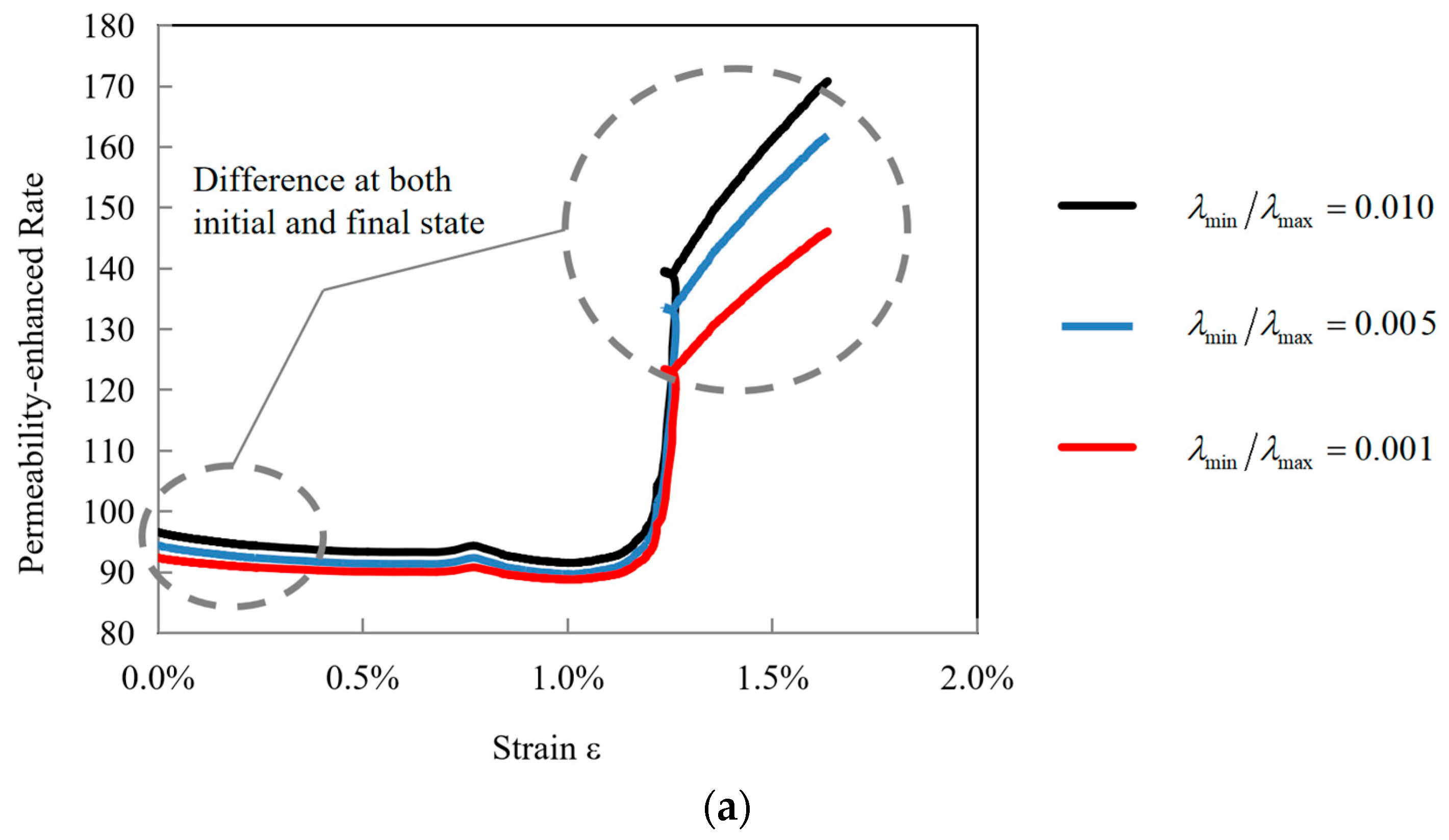 - A fractal model for the permeability-enhanced rate is developed, incorporating the fractal dimensions of both fracture aperture size distribution and flow path tortuosity. These dimensions are determined from volumetric strain and the ratio between minimum and maximum fracture apertures, providing an indirect characterization of the evolving complexity of the fracture network under mechanical loading.