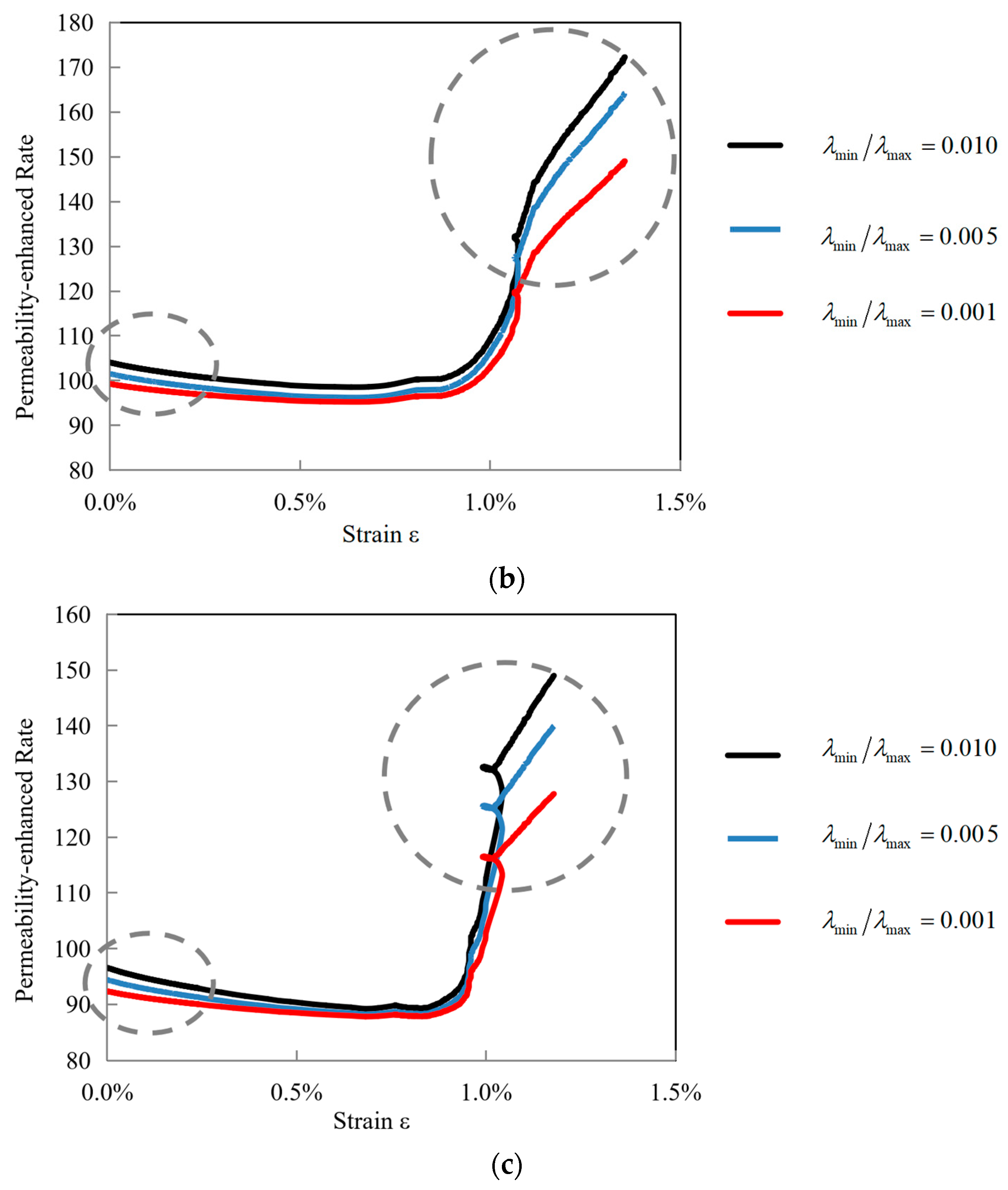 6.2. Impact Mechanism of the λmin/λmax for the New Fractal Permeability-Enhanced Rate Model