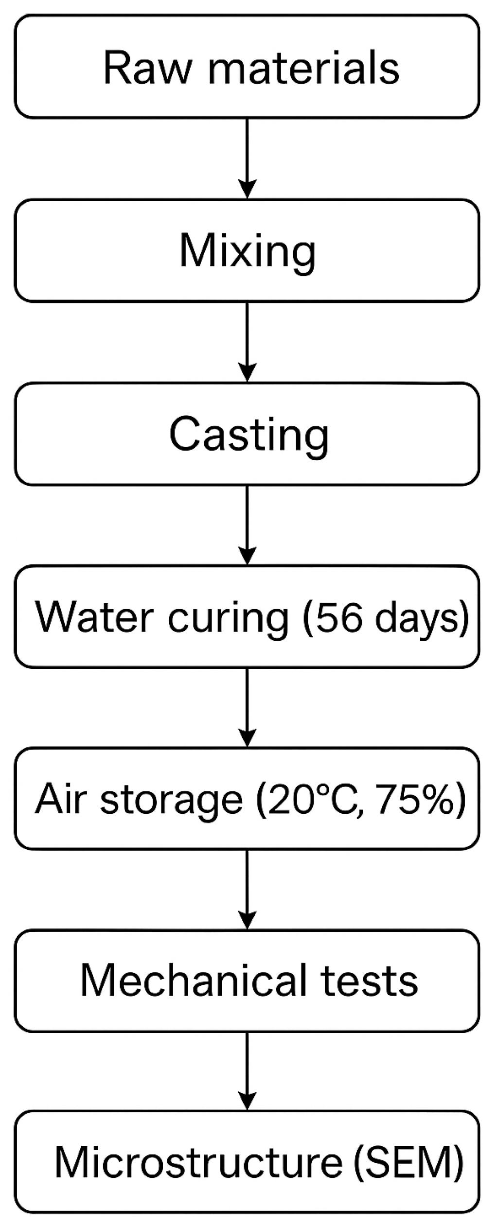 - Durability evaluation based on ultrasonic pulse velocity and porosity confirmed high internal compactness and negligible microcracking after two years of curing, consistent with the high long-term strength and elastic response.