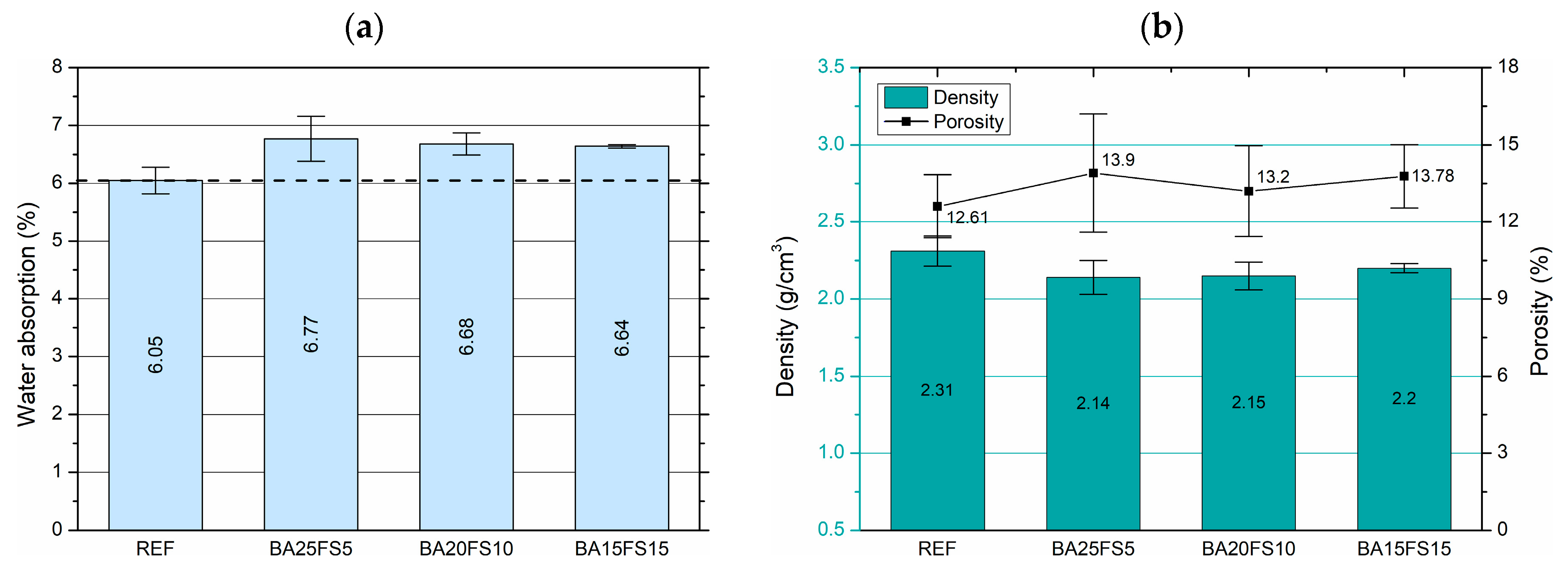 - Synergistic interaction of CBA and WFS resulted in refined pore structure, enhanced hydration, and improved long-term stability. Moderate hybridization levels (BA25FS5 and BA20FS10) provided an optimal balance between compactness and workability.