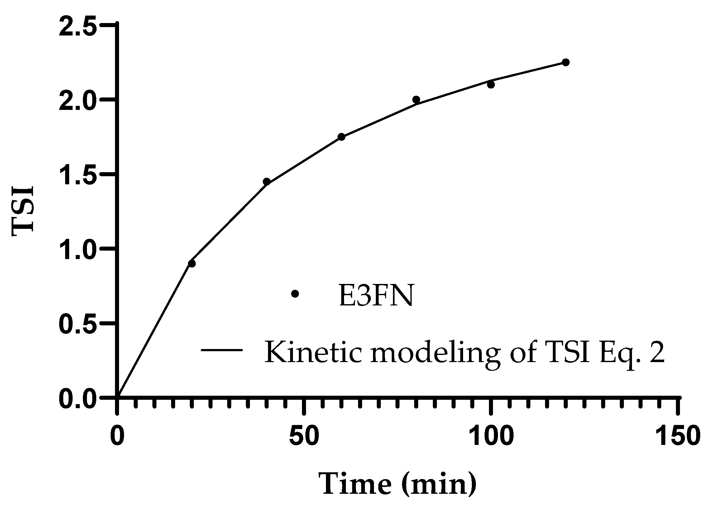 3.2. Description of Emulsion Stability Using TSI and Its Modeling