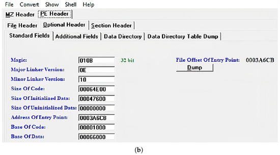We have continued this analysis by implementing some of the previously mentioned actions in Section 3.2, such as dumping the process’s memory and viewing its contents using the PEviwer version 3.5.0.25 tool.