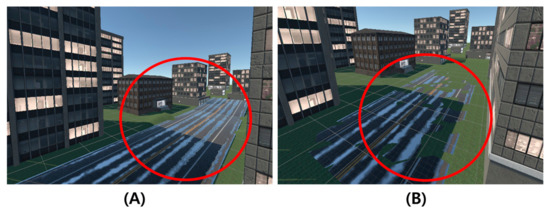 A post hoc inspection indicates that the residual 3–4% collision rate mainly arises from three sources. Collision detection protocol: collisions are counted when any mesh vertex or collider sample penetrates the terrain surface beyond the engine’s contact offset at a fixed evaluation stride (uniform along roads and per-building footprint), with NoData areas excluded. First, terrain–object misalignment at tile seams or at steep local slopes can introduce minor negative z spikes. Second, mesh and collider quality issues can trigger penetrations, including thin facets, non-manifold edges, or pivots that are not placed at the physical base. Third, Unity physics defaults can be insufficient for our assets and scales, including contact offset, solver iterations, and the absence of continuous collision detection for fast movers. We mitigate these issues with three measures. We apply slope-aware anchoring that snaps each building base to the local median DEM sample within its footprint. We enforce collider hygiene through a pivot-at-base convention, convex colliders for small or thin assets, and removal of non-manifold triangles. We also tune physics parameters through a slightly increased contact offset, a higher solver-iteration budget, and enabling continuous collision detection for fast movers. These measures target terrain, asset, and engine factors respectively and remain compatible with the fixed rendering profile reported above.
