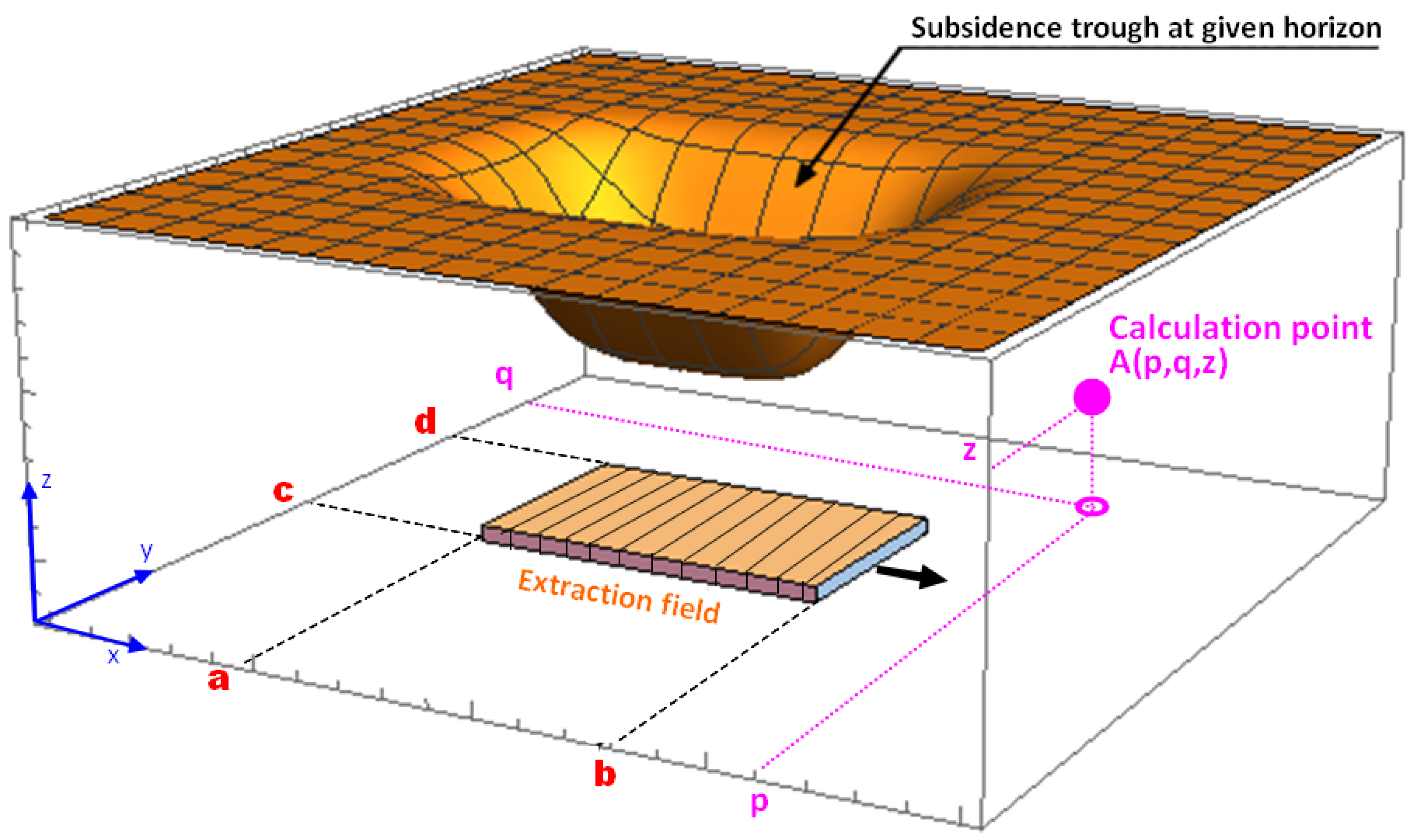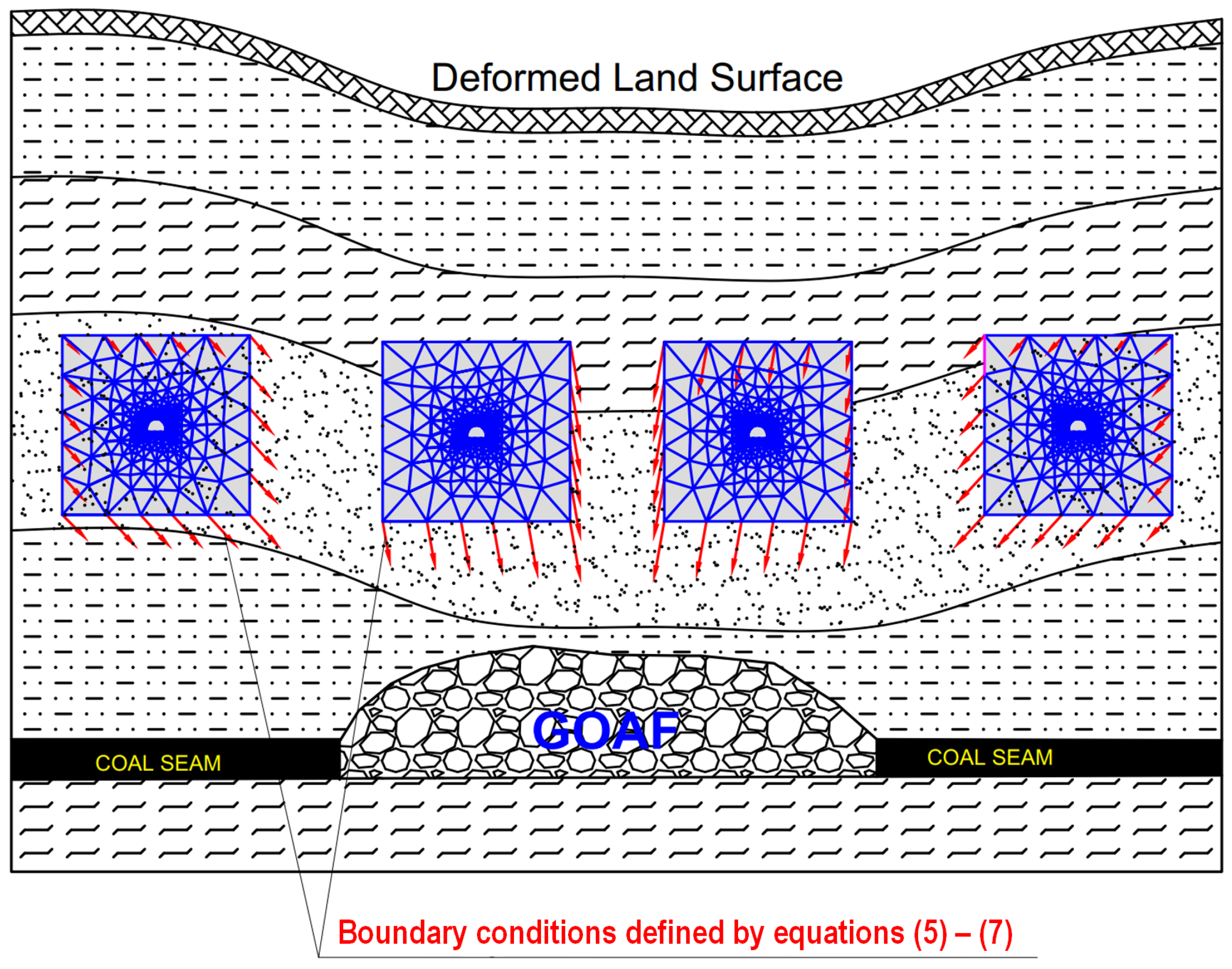 - The ability to perform simulations without numerically modeling the complex processes of coal extraction and caving rubble formation.