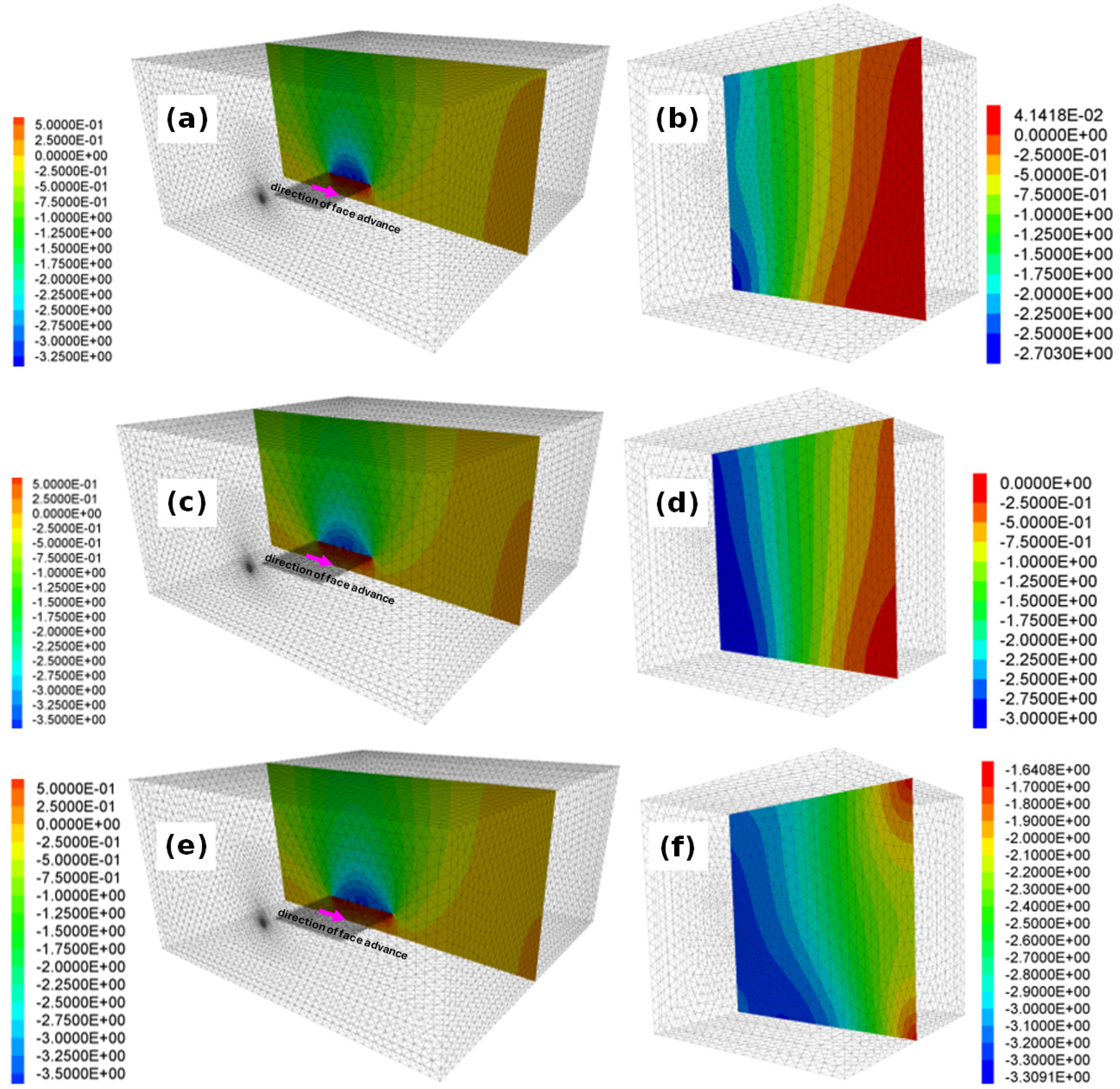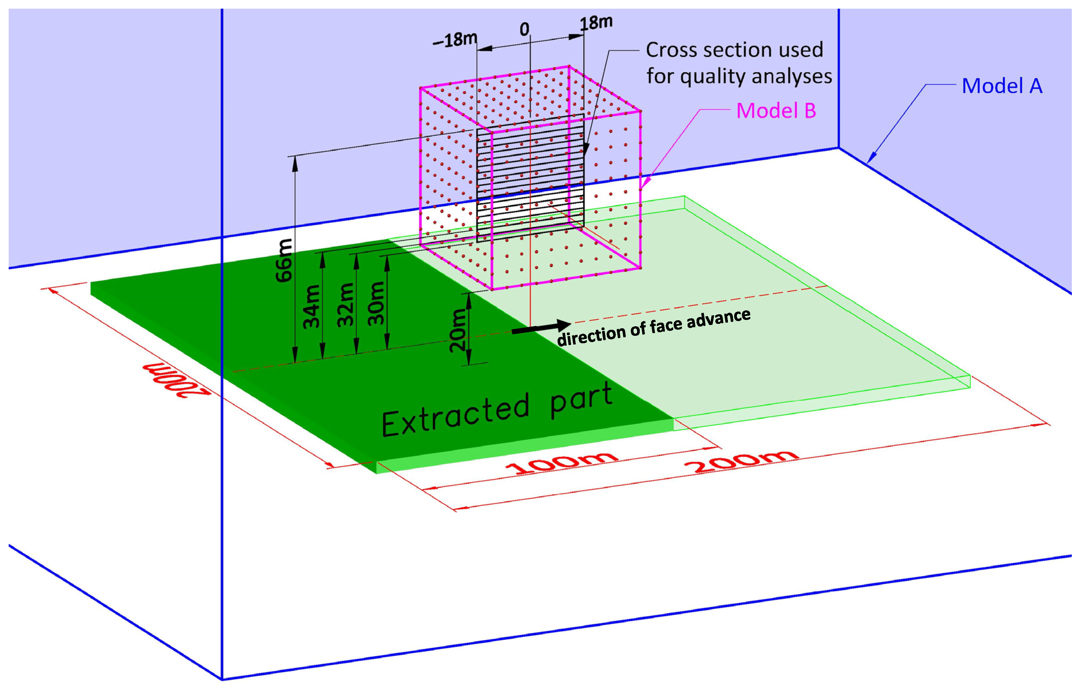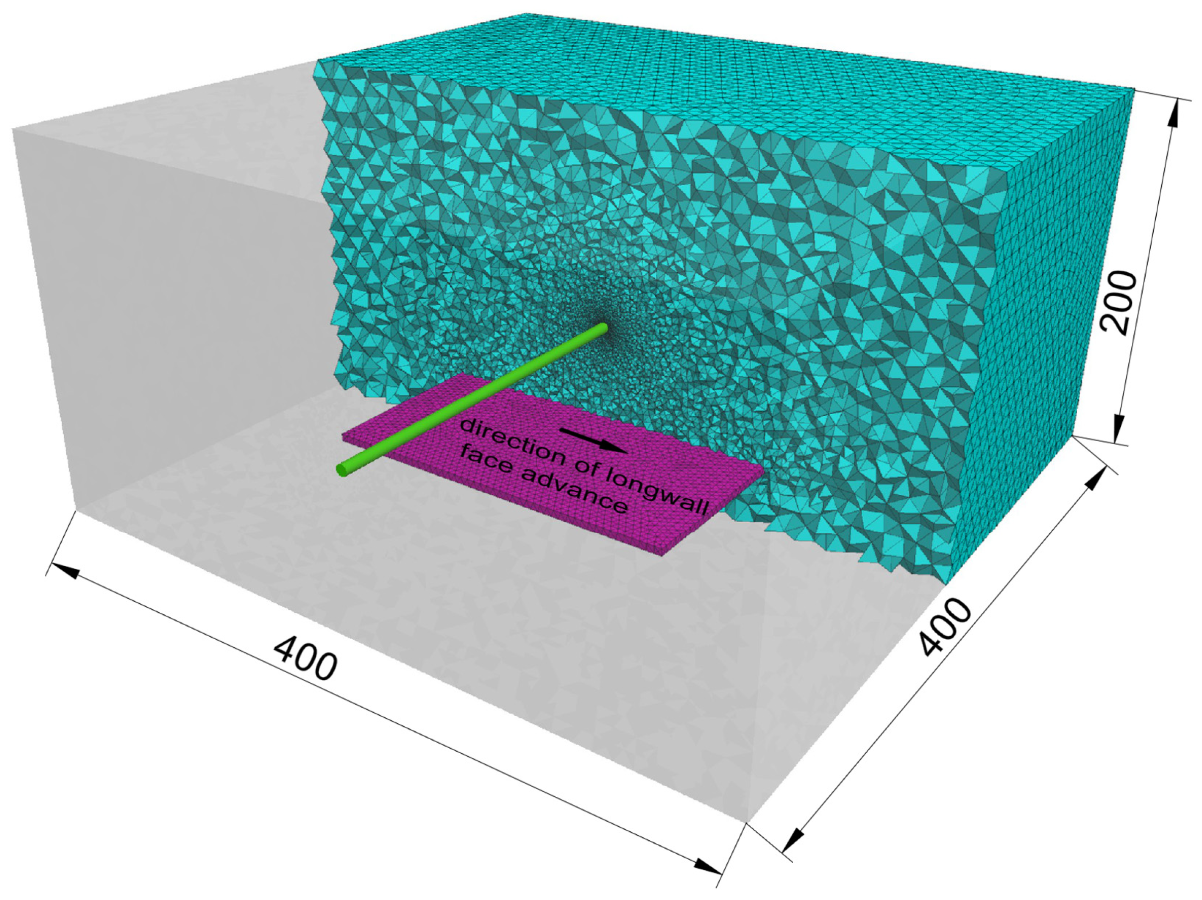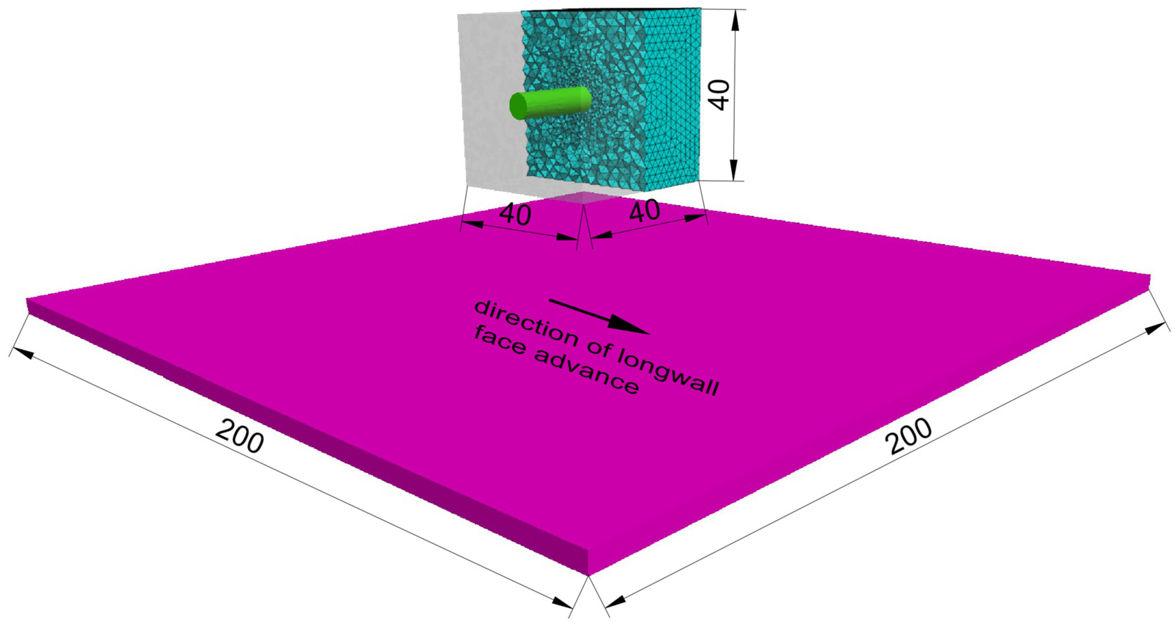 - An arbitrarily small step of longwall face advance. As mentioned earlier, the minimum advance should depend on the cutting depth of the shearer, yet in the proposed method the extent of the extracted seam in successive simulation stages can be chosen freely.
