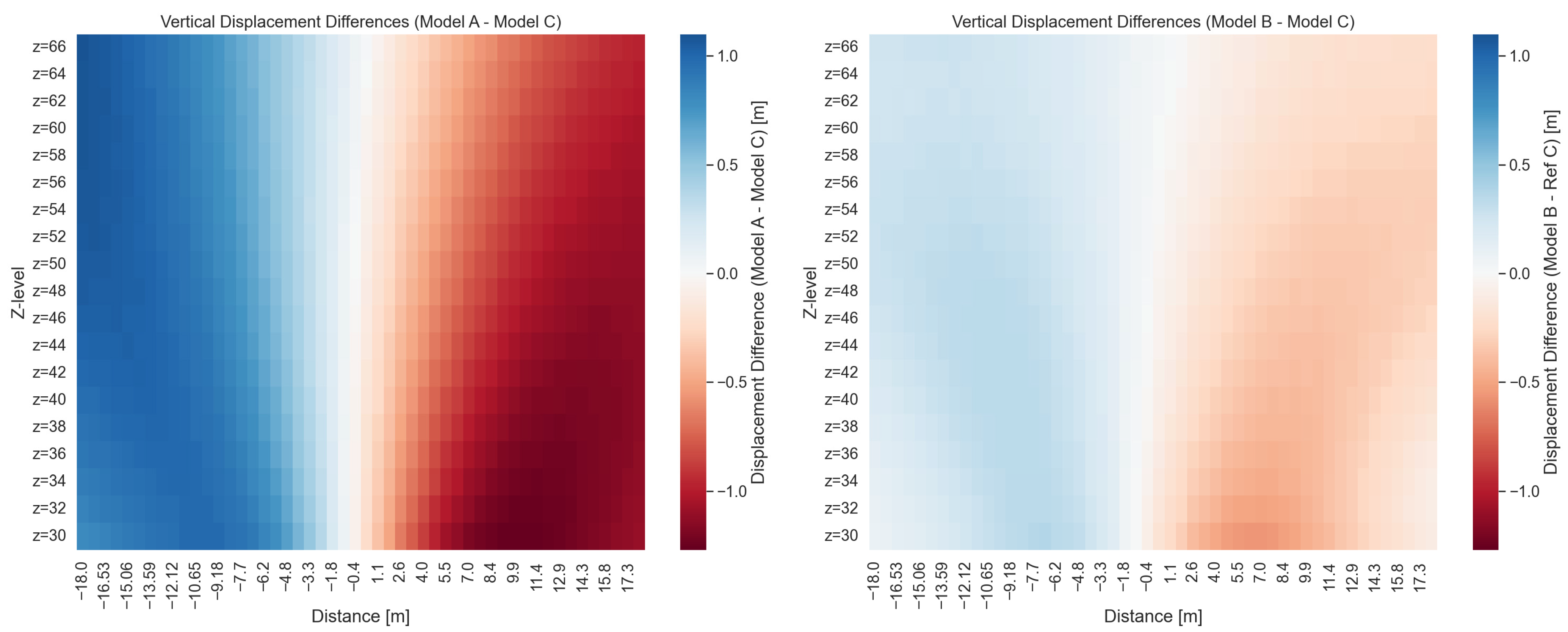 - Difference maps: Providing a spatial overview of displacement differences across the entire Z-level and distance grid (Figure 14).