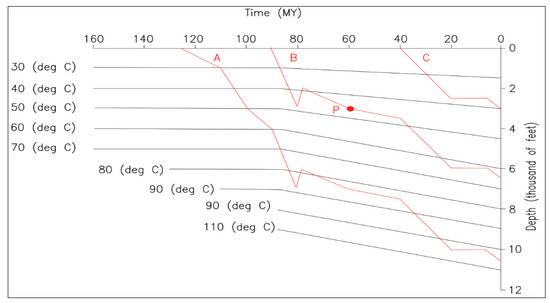 The ages of the geological formations (millions of years) were read from (Figure 10):