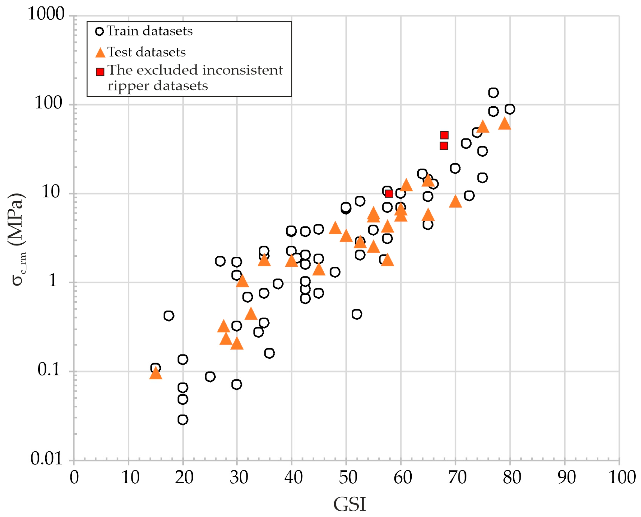 - Tsiambaos, G.; Saroglou, H. Excavatability assessment of rock masses using the geological strength index (GSI). Bull. Eng. Geol. Environ. 2010, 69, 13–27. [Google Scholar]
