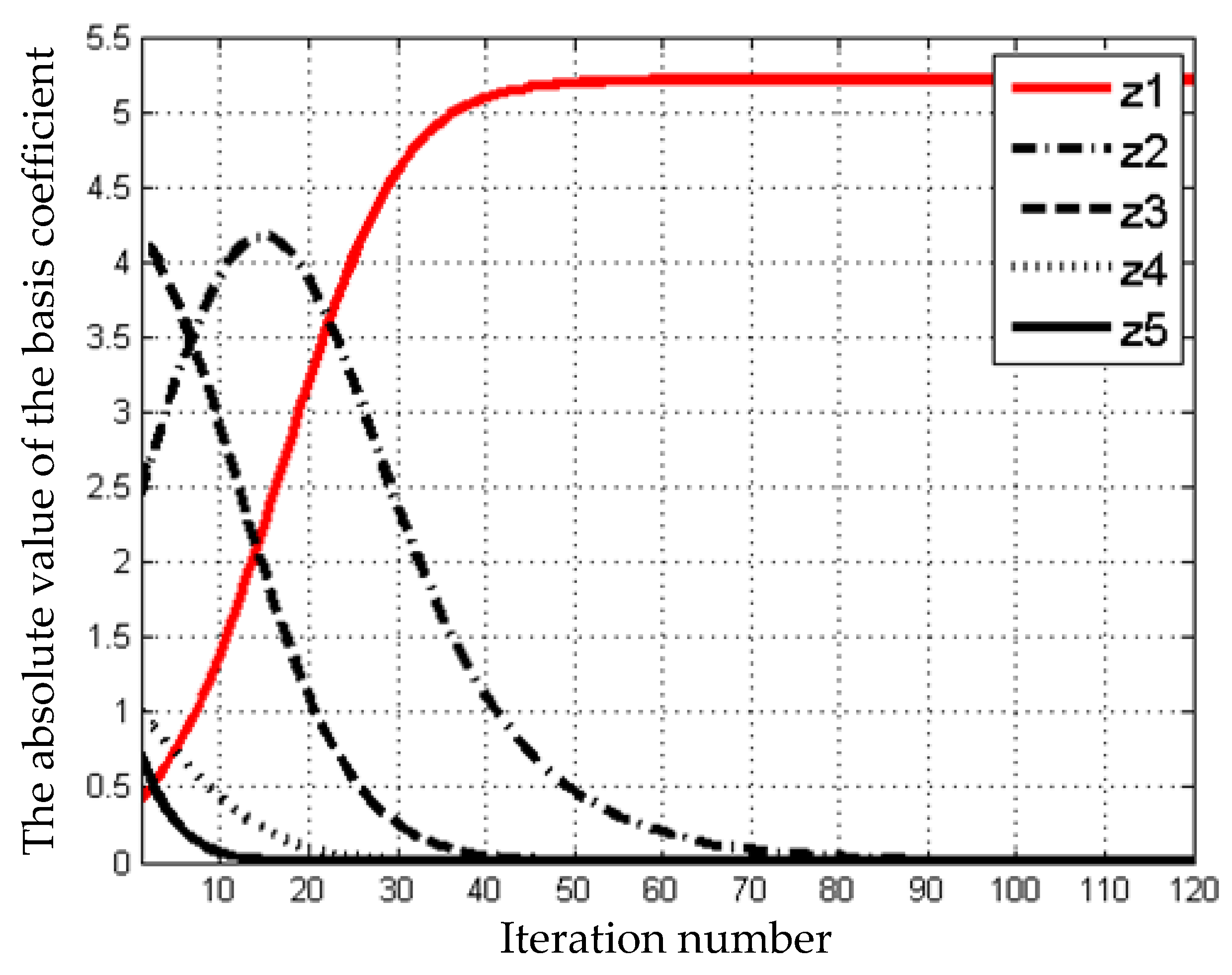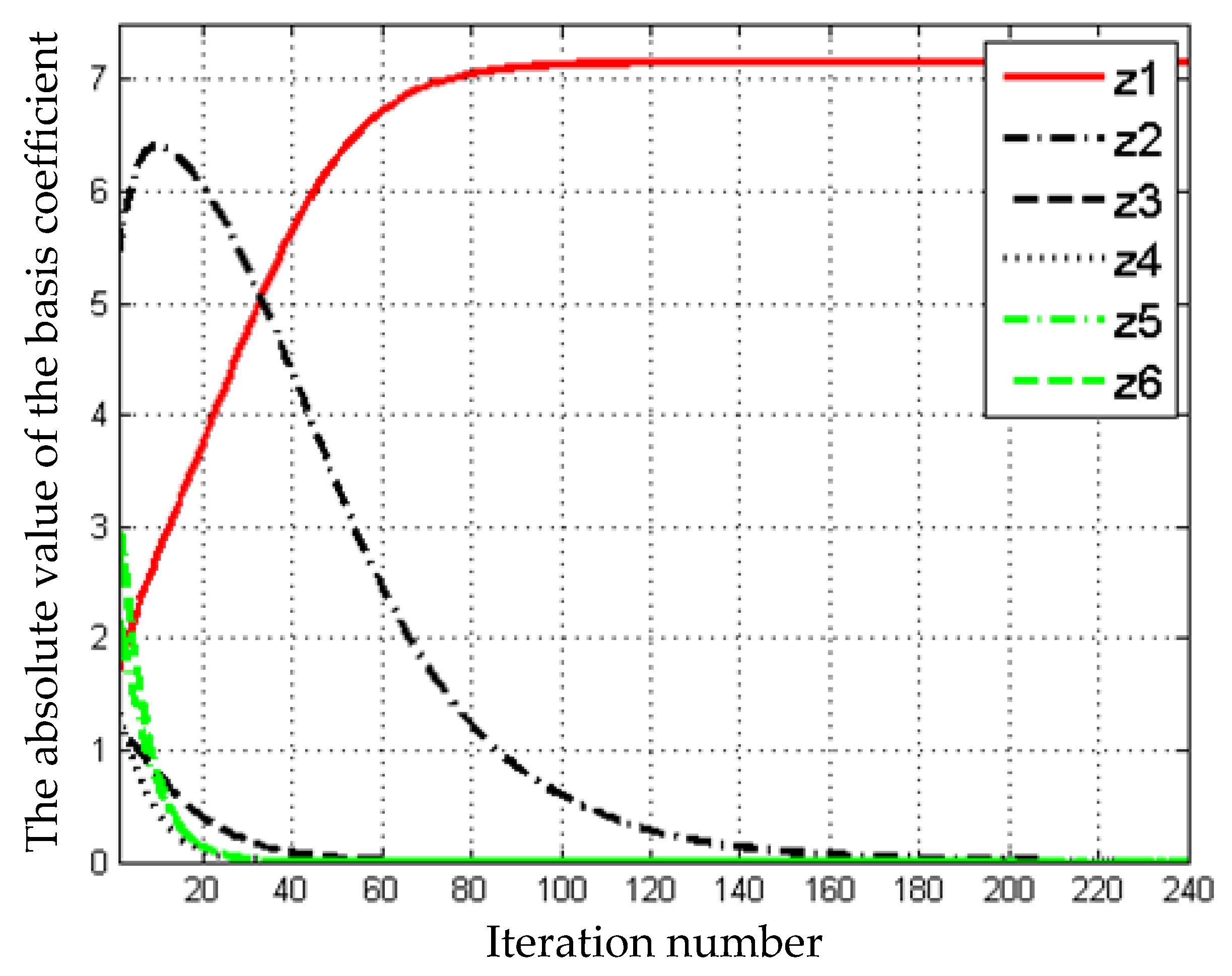 Figure 4 illustrates the trajectory of the basis coefficient’s absolute value under the initial condition