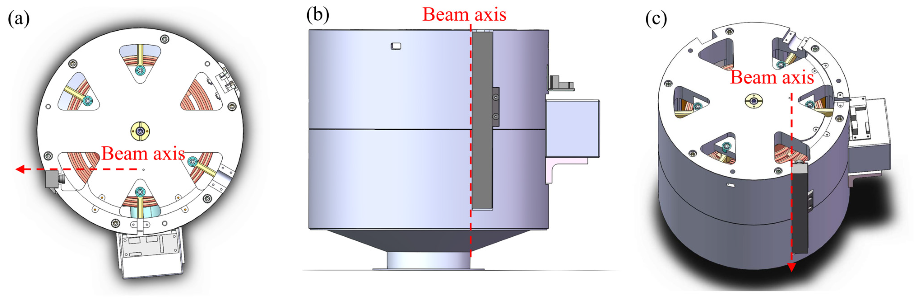 To verify the performance of the X-ray dose monitoring for the small-sized Betatron mentioned above, an ionization chamber and corresponding circuits were developed based on the geometric parameters of the chamber. The chamber is integrated into the accelerator’s magnet, with its vertical center aligned with the center of the X-ray beam. The installation diagram can be seen in