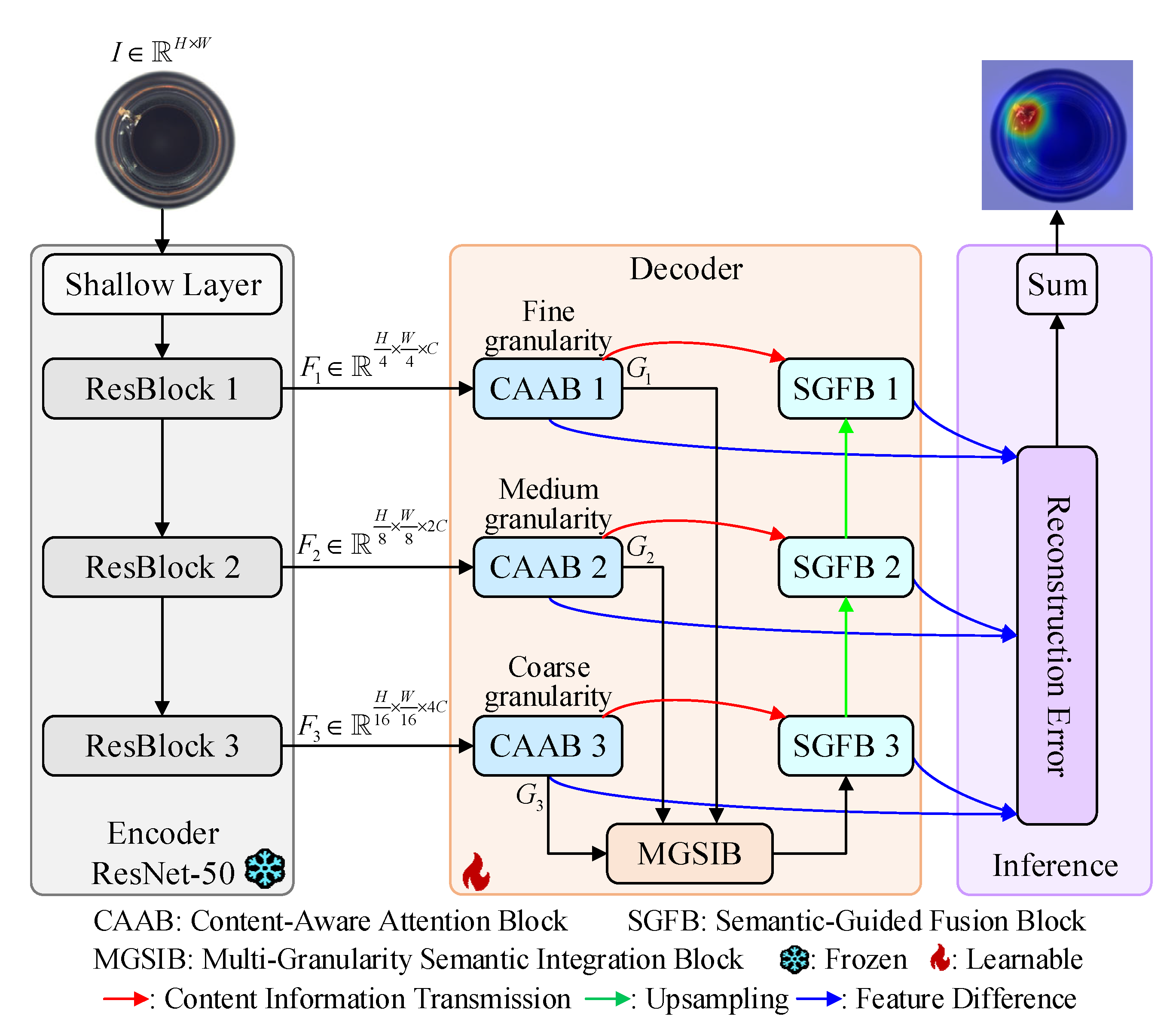 Guo, X.; Zhao, S.; Xue, J.; Liu, D.; Han, X.; Zhang, S.; Zhang, Y. Multi-Granularity Content-Aware Network with Semantic Integration for Unsupervised Anomaly Detection. Appl. Sci. 2025, 15, 11842. https://doi.org/10.3390/app152111842