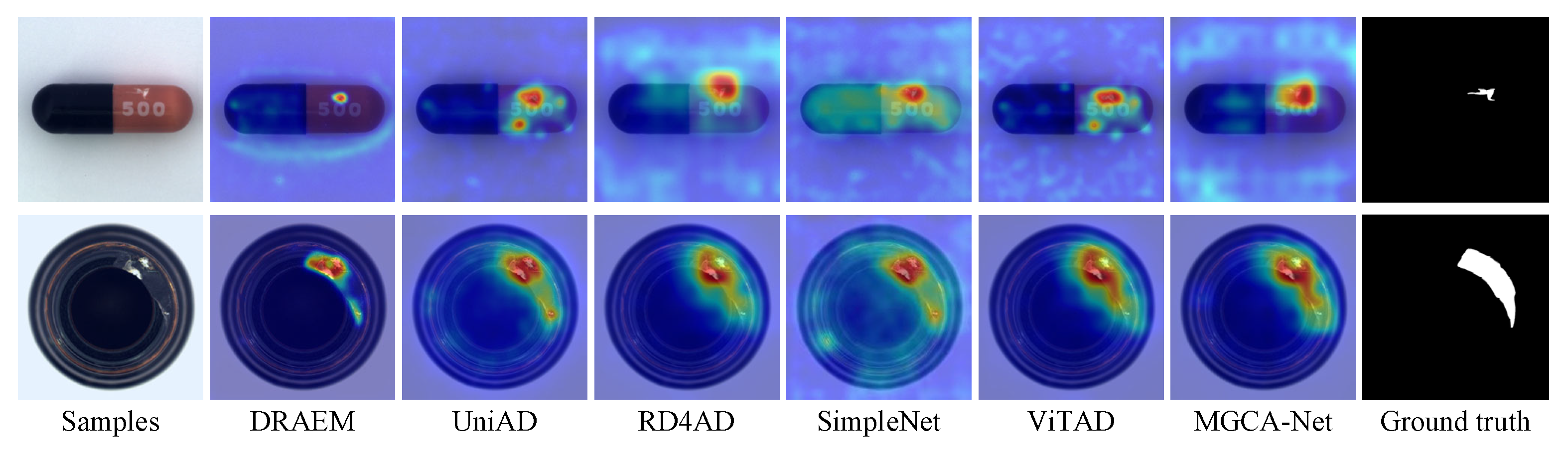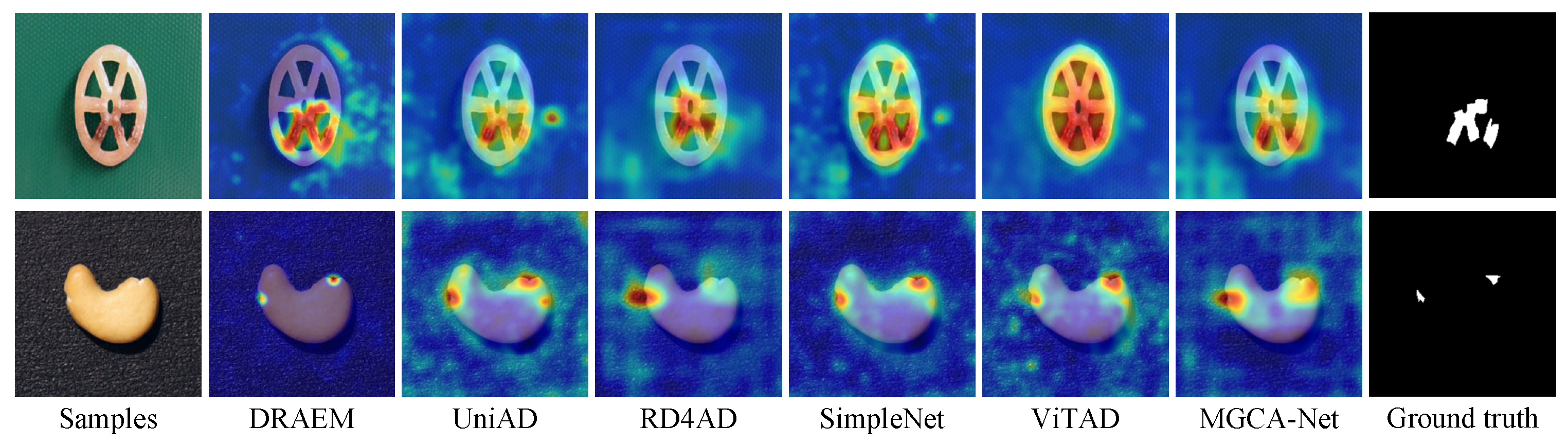 | Metrics | DRAEM [43] | UniAD [44] | RD4AD [45] | SimpleNet [46] | ViTAD [47] | MGCA-Net | |
